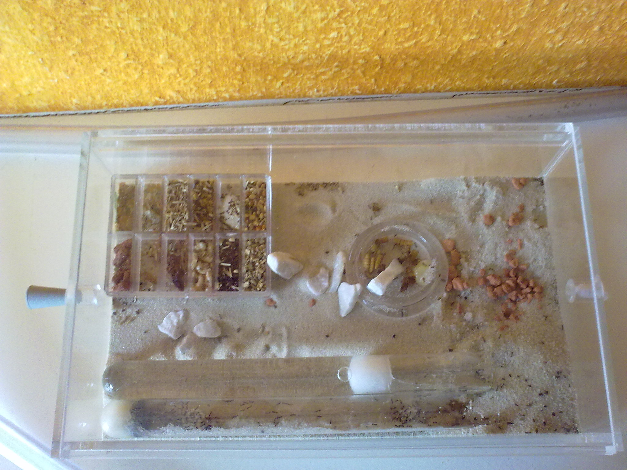 Zum GlĂŒck sind die Tetramorium immer noch nicht umgezogen, sodass ich ĂŒberlege die Farm einfach wieder abzutrennen, wobei immer einige Ameisen in dieser sind und es somit schwierig werden dĂŒrfte...