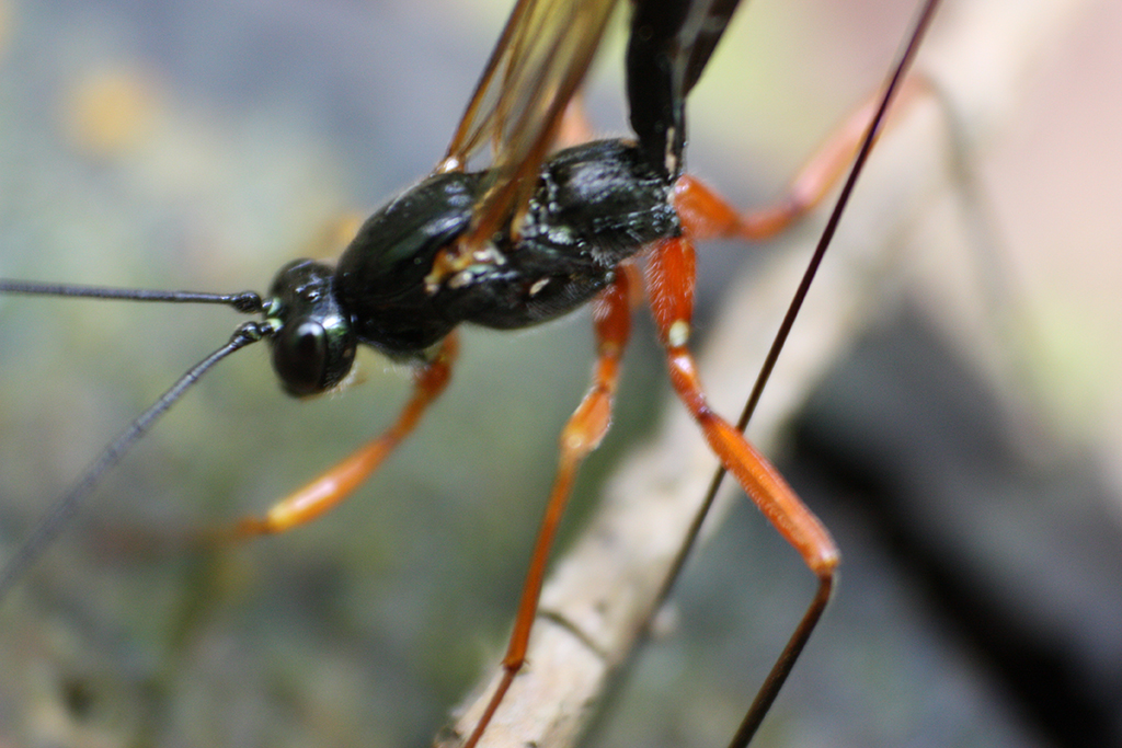 Foto 8 : eine Große Schlupfwespe beim Bohren in Holz