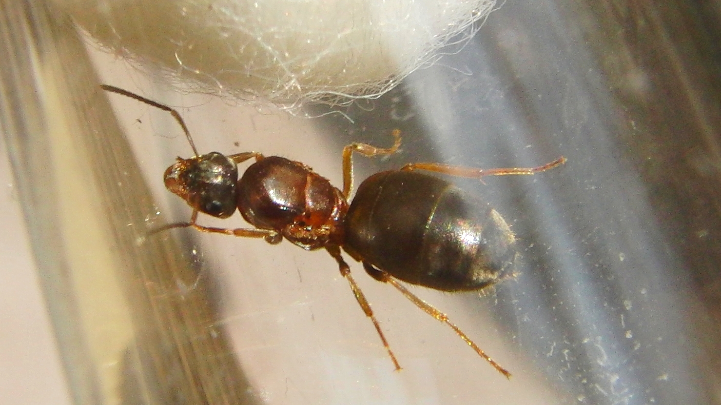 Die Gyne ist ziemlich genau 9mm groß was für Lasius emarginatus spricht. Lasius brunneus weist aber laut Ameisenwiki bis zu 8,5mm auf. Ich bin leider überfragt, evtl. könnt ihr mir weiterhelfen.