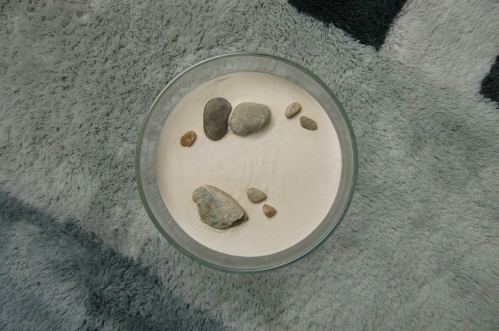 Zuerst sollte die Wanne grĂŒndlich gereinigt werden. Danach kann der Gips angerĂŒhrt werden. Erstrebenswert ist eine jogurtĂ€hnliche Konsistenz, sodass man ihn gut zum Ausgießen der Wanne verwenden kann. Der Gips kann nun wahlweise mit Lehmpulver oder Abtönfarbe eingefĂ€rbt werden. WĂ€hlt man Lehmpulver, sollte man darauf achten, dass die Masse nicht zu trocken wird. Also lieber etwas mehr Wasser hinzugeben. Anschließend kann die Wanne vorsichtig ausgegossen werden. Sollten die WĂ€nde etwas abbekommen, kann man den Gips noch gut mit einem feuchten KĂŒchentuch entfernen. Gleich daruf können die Steine in beliebiger Anordnung in den Gips gedrĂŒckt werden. Wenn erwĂŒnscht kann auch noch anderes Dekomatial verwendet werden, wie etwa Sand oder feiner Kies. Organisches Material sollte nicht eingegossen werden.