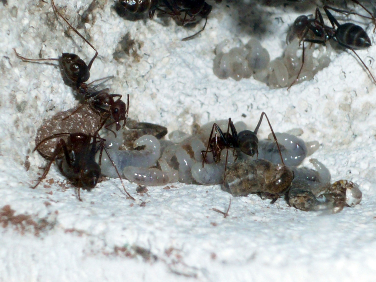 Eine weitere Eigenheit der nodus ist das Scharren. Mehrfach konnte ich beobachten, wie Arbeiterinnen den Nesteingang vergrößerten, indem sie Sand mit schnellen Bewegungen der Vorderbeine unter sich hindurch schoben; wie ein Hund. Leider habe ich keine möglichkeit, dieses Verhalten zu filmen.