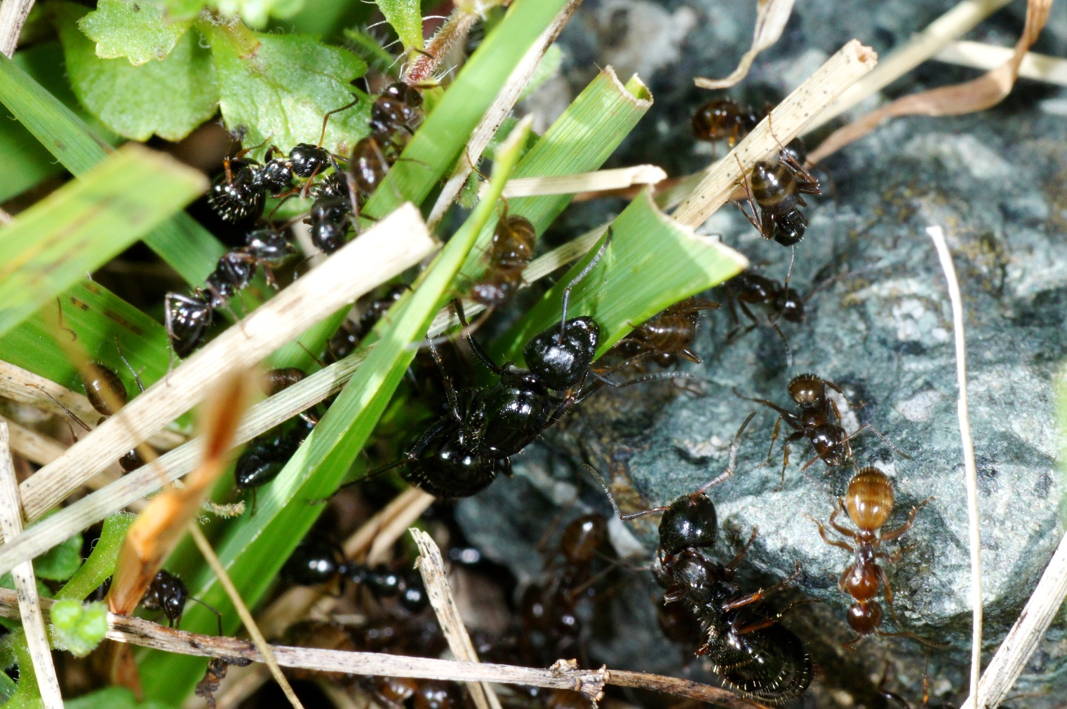 Eine Lasius niger (hier nur kleine 2 mm-Tierchen) musste ich fangen u. an einem anderen Ort absetzen: Sie wollte allein (!) mehrere piceus-Arbeiterinnen attackieren und hätte bestimmt in kürzester Zeit eine ganze Meute rekrutiert.