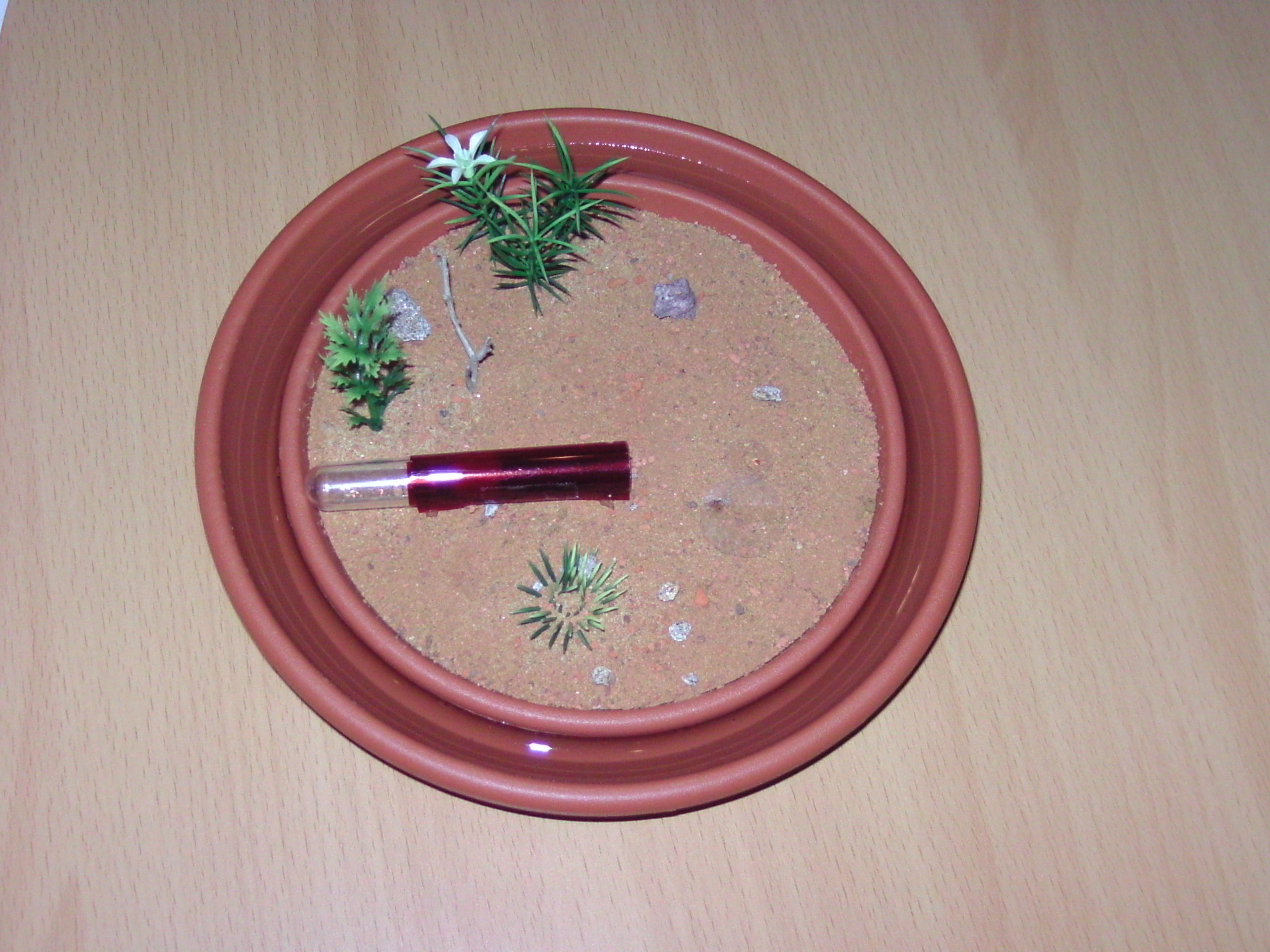 3. Gestalten (In meinem Fall mit Plastikpflanzen von Antstore und Steinchen)
