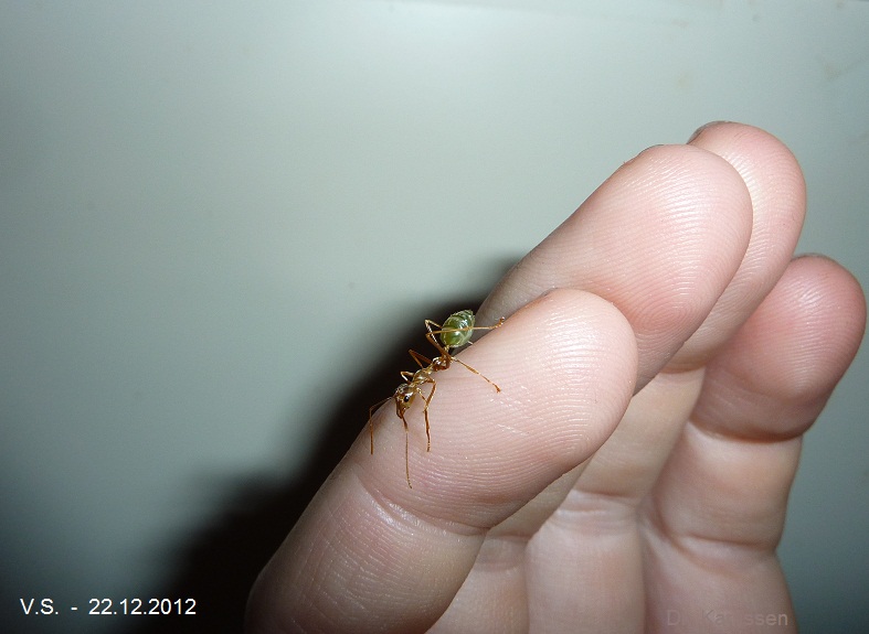 Auch die dicke Smaragd-Schönheit konnte ich mal wieder sichten, nachdem viele der Arbeiterinnen nicht mehr die Sicht in den Plastik-Eimer versperren,