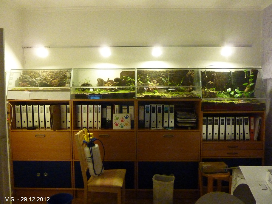 Der Blick gleitet weiter, an die Wand gegenĂŒber der vier groĂen Becken, die zum gröĂten Teil nicht aus Wand, sondern aus Fensterglas besteht.