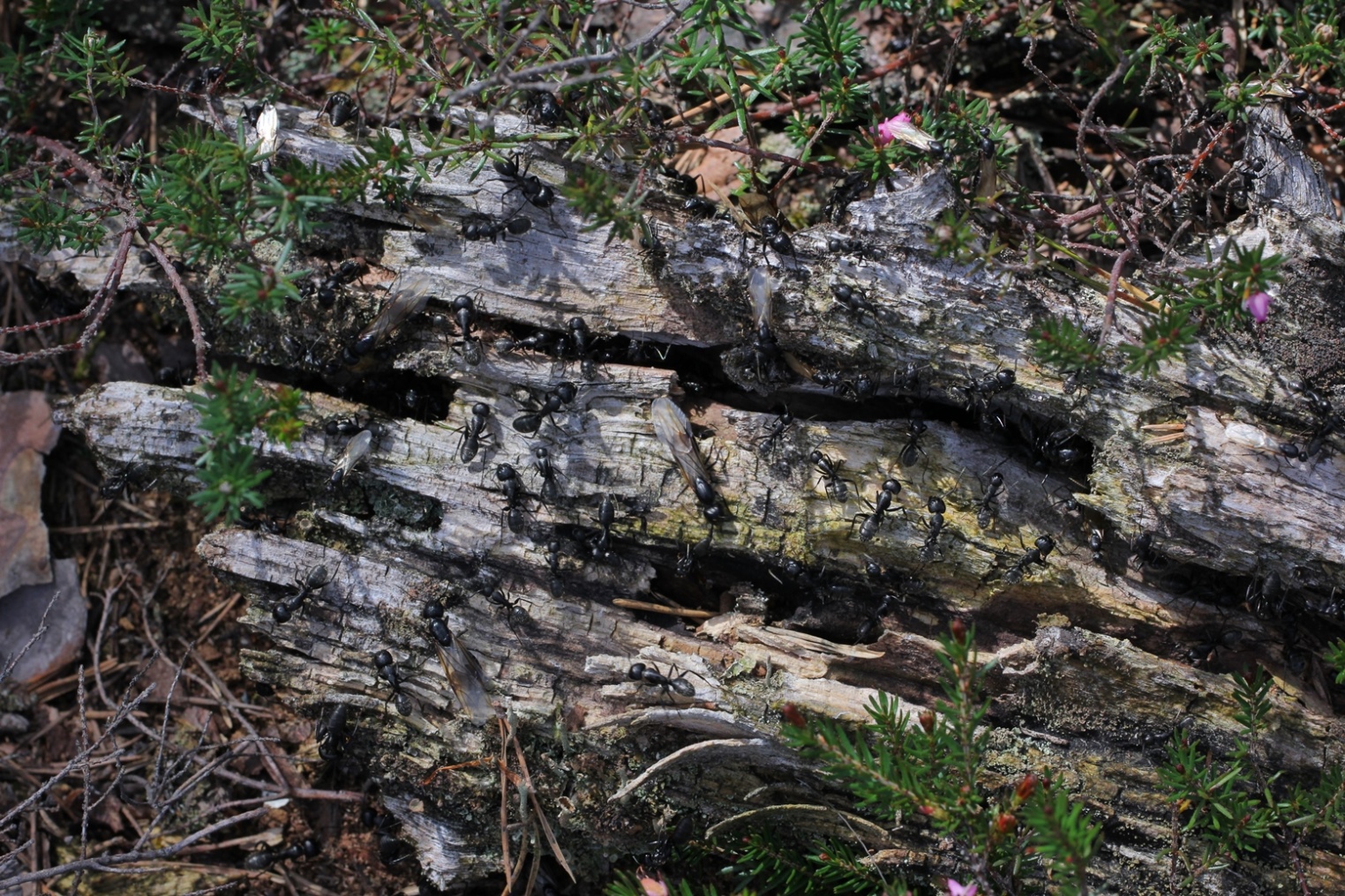 Hier ein Bild von heute, als ich mal wieder auf Besuch war um zu schauen, wie es ausschaut. Wenn sie sich beobachtet fühlen, dann ziehen sie sich sehr schnell zurück, die Geschlechtstiere werden sogar von den Arbeiterinnen richtig ins Nest zurückgescheucht, fast schon attackiert... ^^