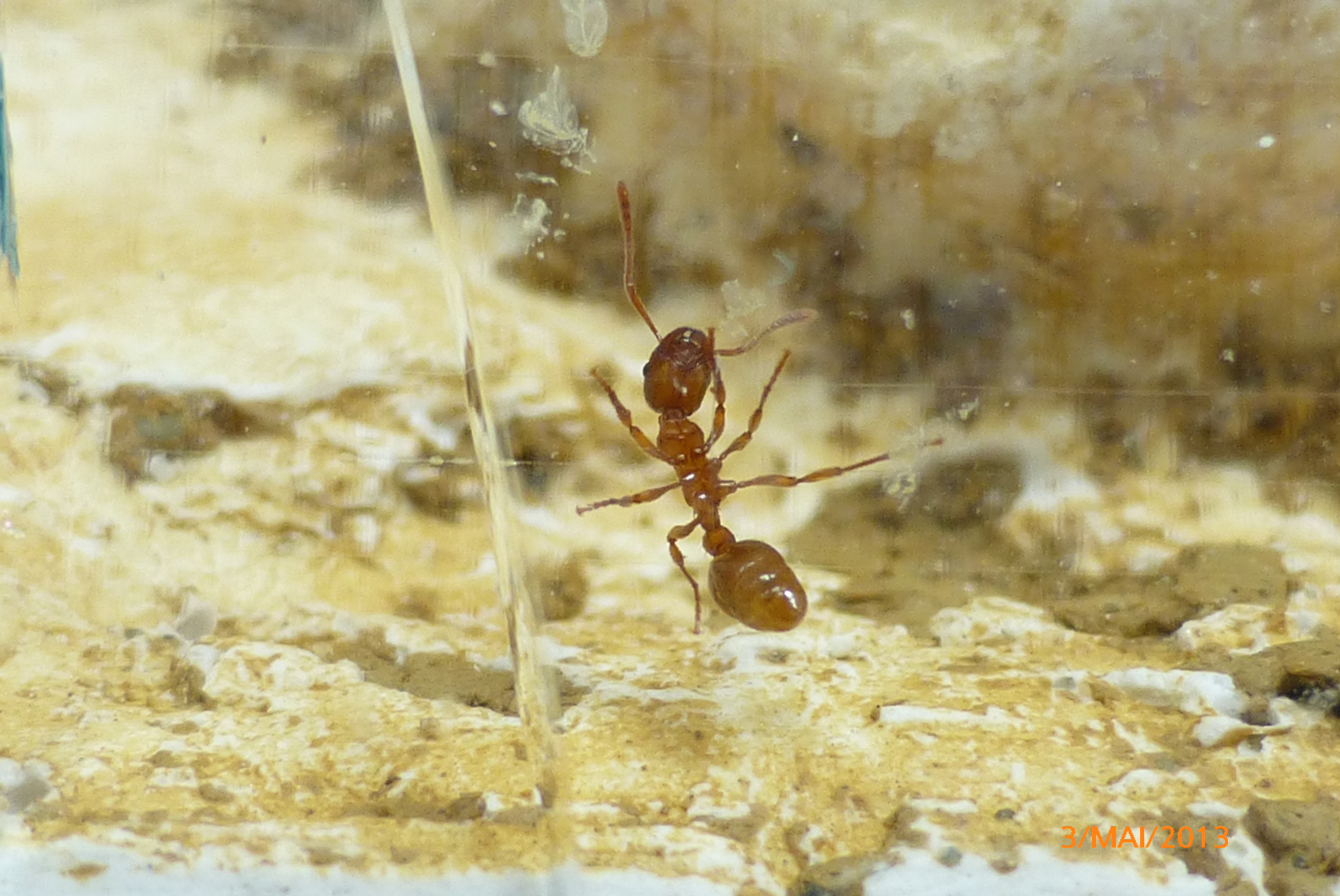 Die fotografierte Ameise stammt vom MĂĽllplatz im Formicarium.