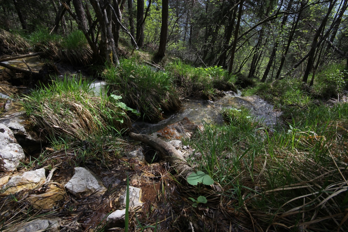 10. Jetzt geht es Richtung Wald: Hier sprudeln mehrere Karstquellen, aber nur im Frühling, im Rest d. Jahres ist alles trocken!