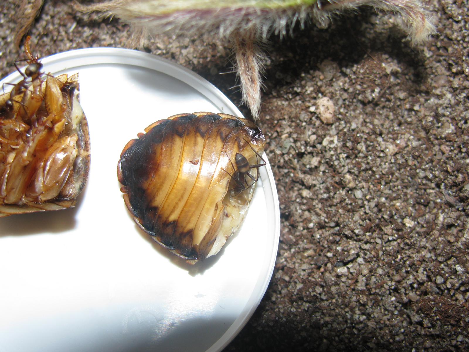 Das Eipaket ist meiner Meinung nach leicht angewachsen, es sind auch schon die ersten kleinen Larven vorhanden.
