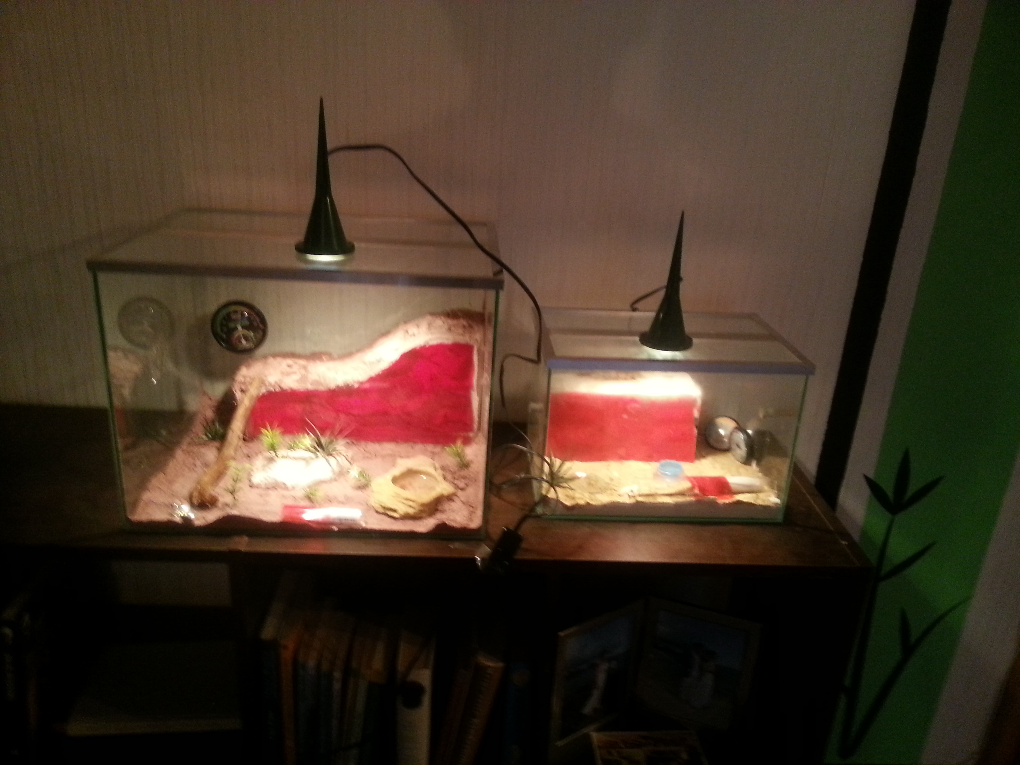 Ich habe gestern eine Camponotus ligniperdus Kolonie mit 1-4 Arbeiterinnen beim Antstore bestellt und die Arena fertig gemacht. Hinten in der Arena das mit Gyps/Sand Gemisch verschönerte Ytongnest, ĂŒber einen kleinen Ast gelangen die Meisen dann in den eigentlichen Arena Bereich mit kĂŒnstlichen Pflanzen und einem StyroporhĂŒgel, der mit einer Gips/Sand Mischung bedeckt ist