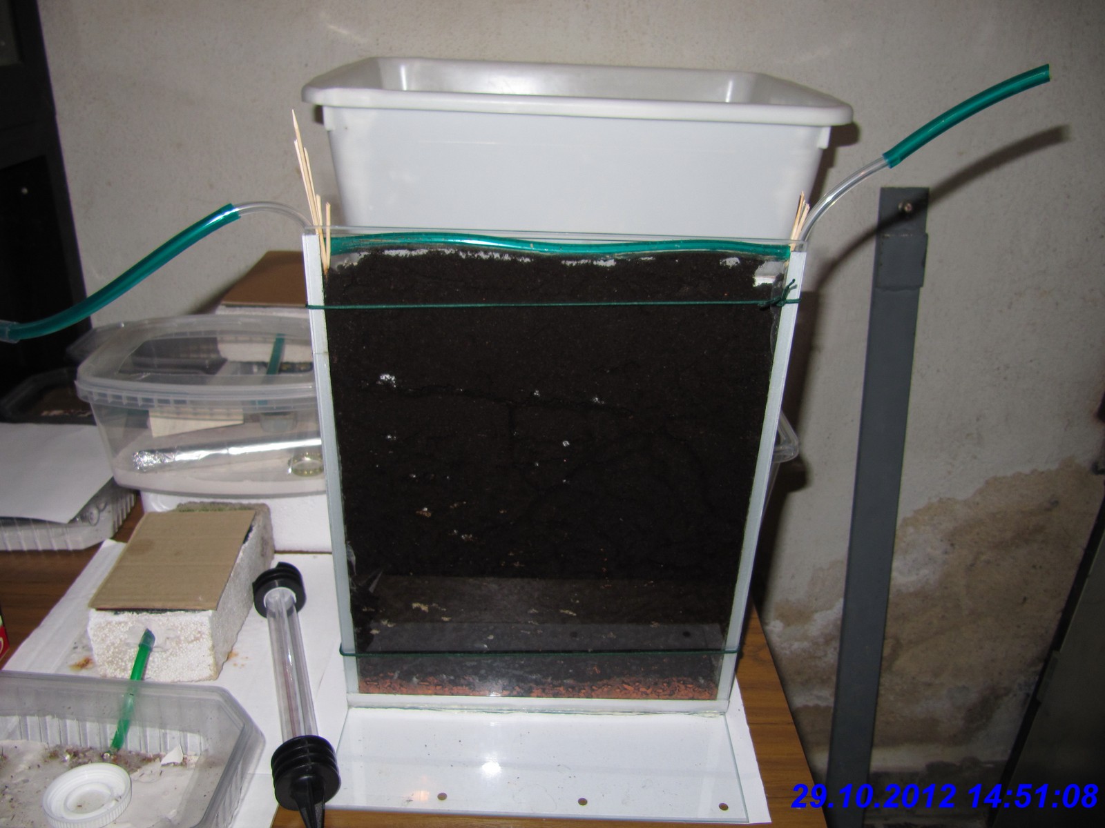 Im Januar bin ich dann auf diesen [url=http://www.ameisenforum.de/technik-basteln/46234-ameisenfarm-aus-glas-unter-10-a.html]Beitrag[/url] im Forum gestoßen und habe entschieden, für die Lasius cf. flavus eine Farm (Bild 1) nach der im Beitrag beschriebenen Bauanleitung zu fertigen.