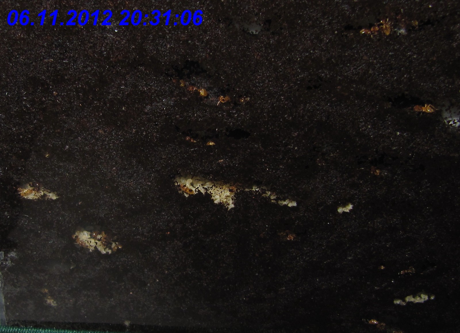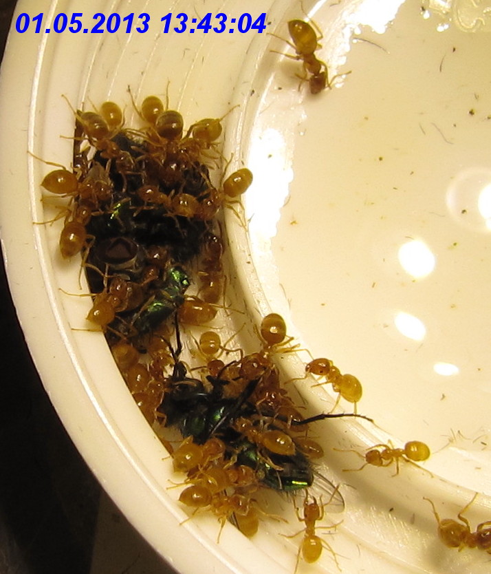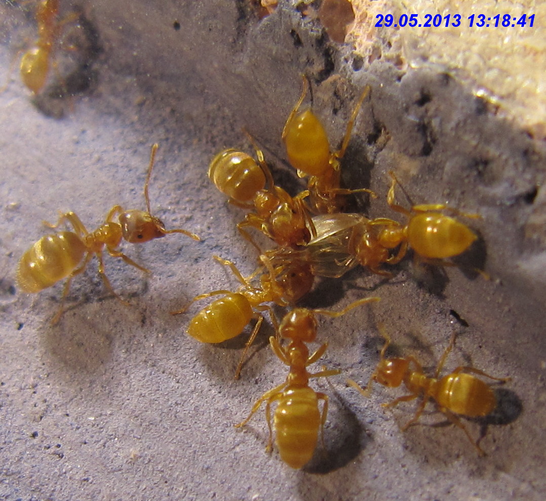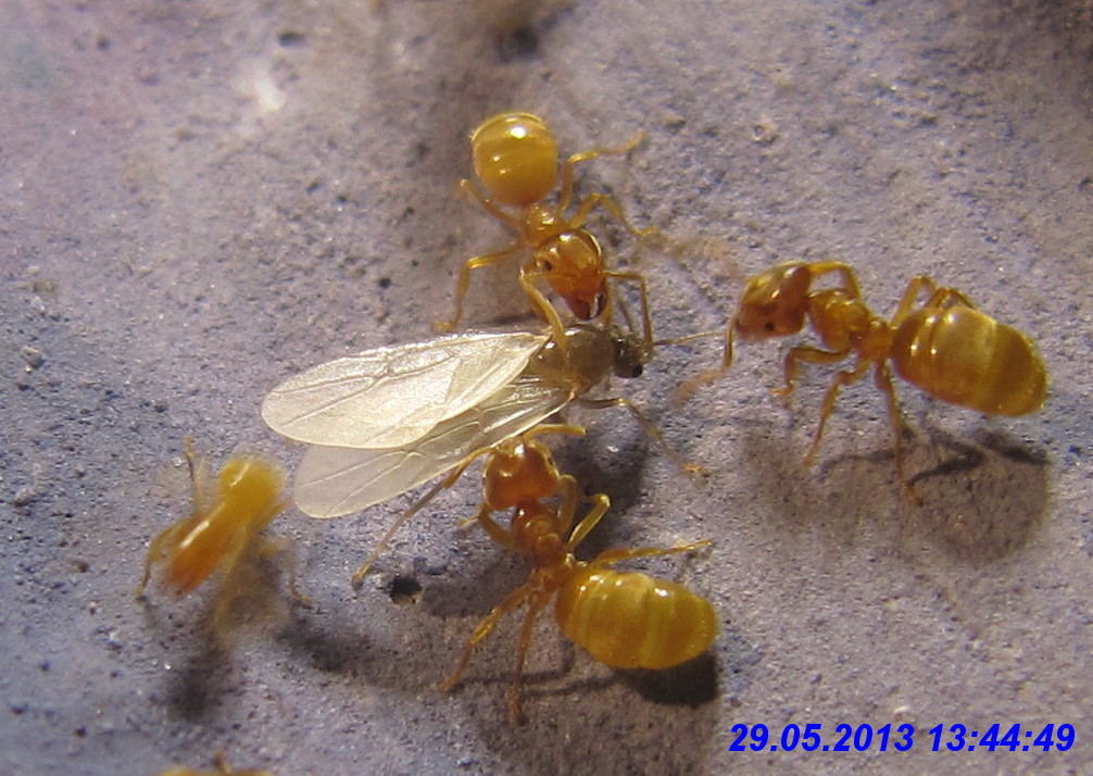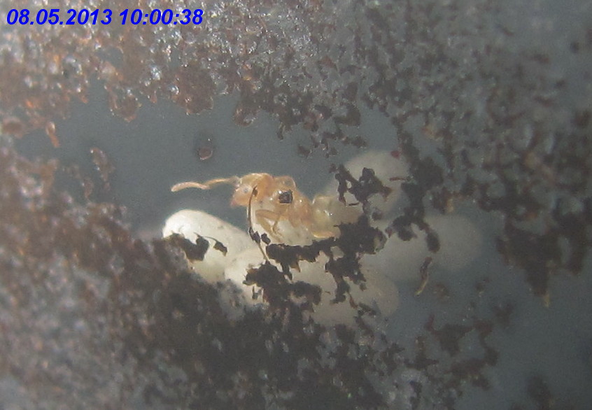 Von den Lasius cf. flavus waren zu diesem Zeitpunkt zumindest noch zahlreiche Arbeiterinnen vorhanden, die ich regelmäßig am angebotenen Zuckerwasser beobachten konnte. Sogar eine dealate