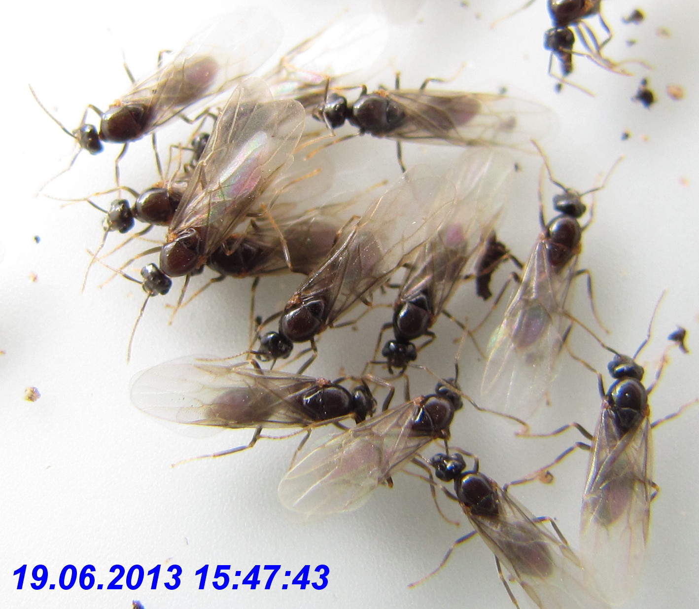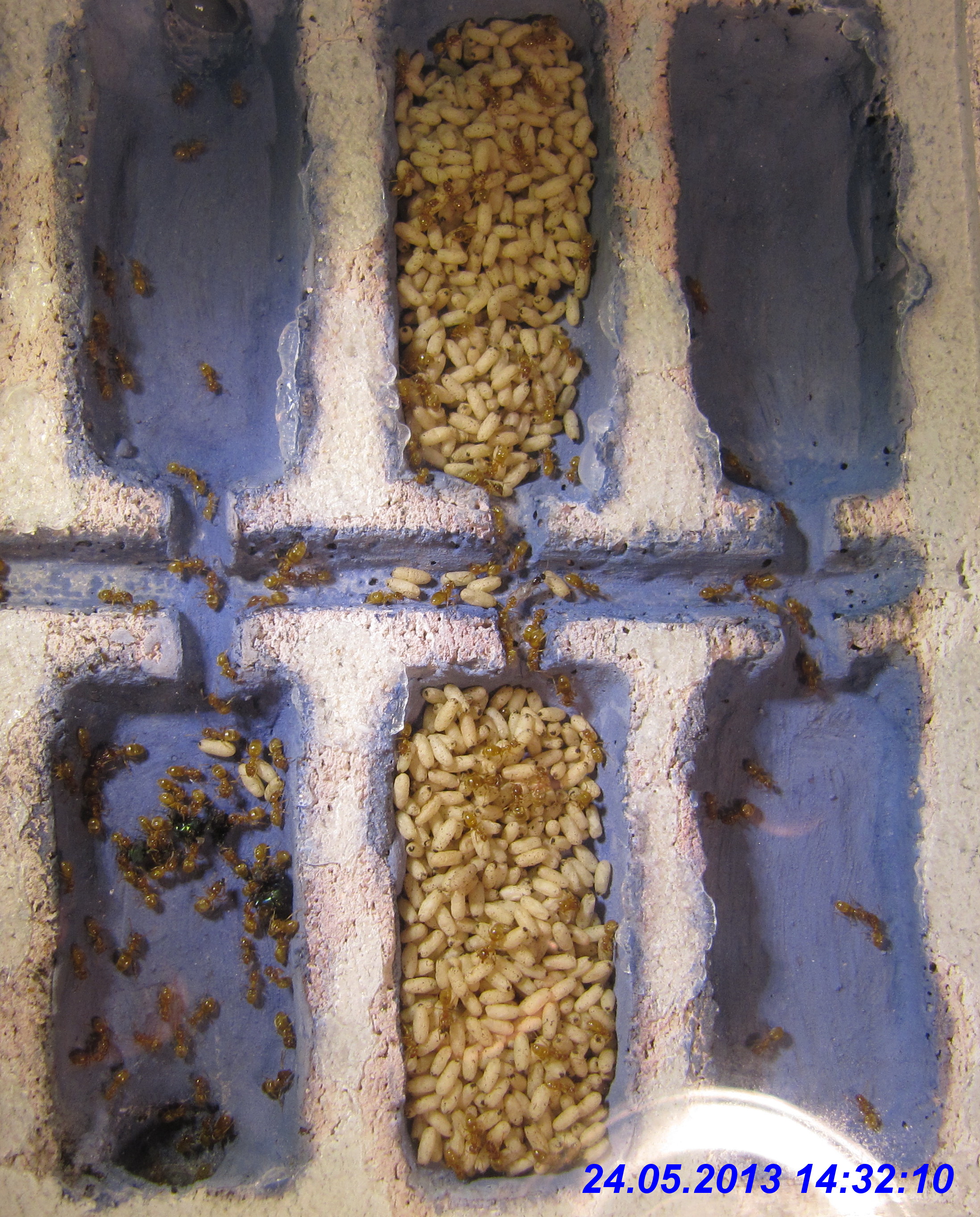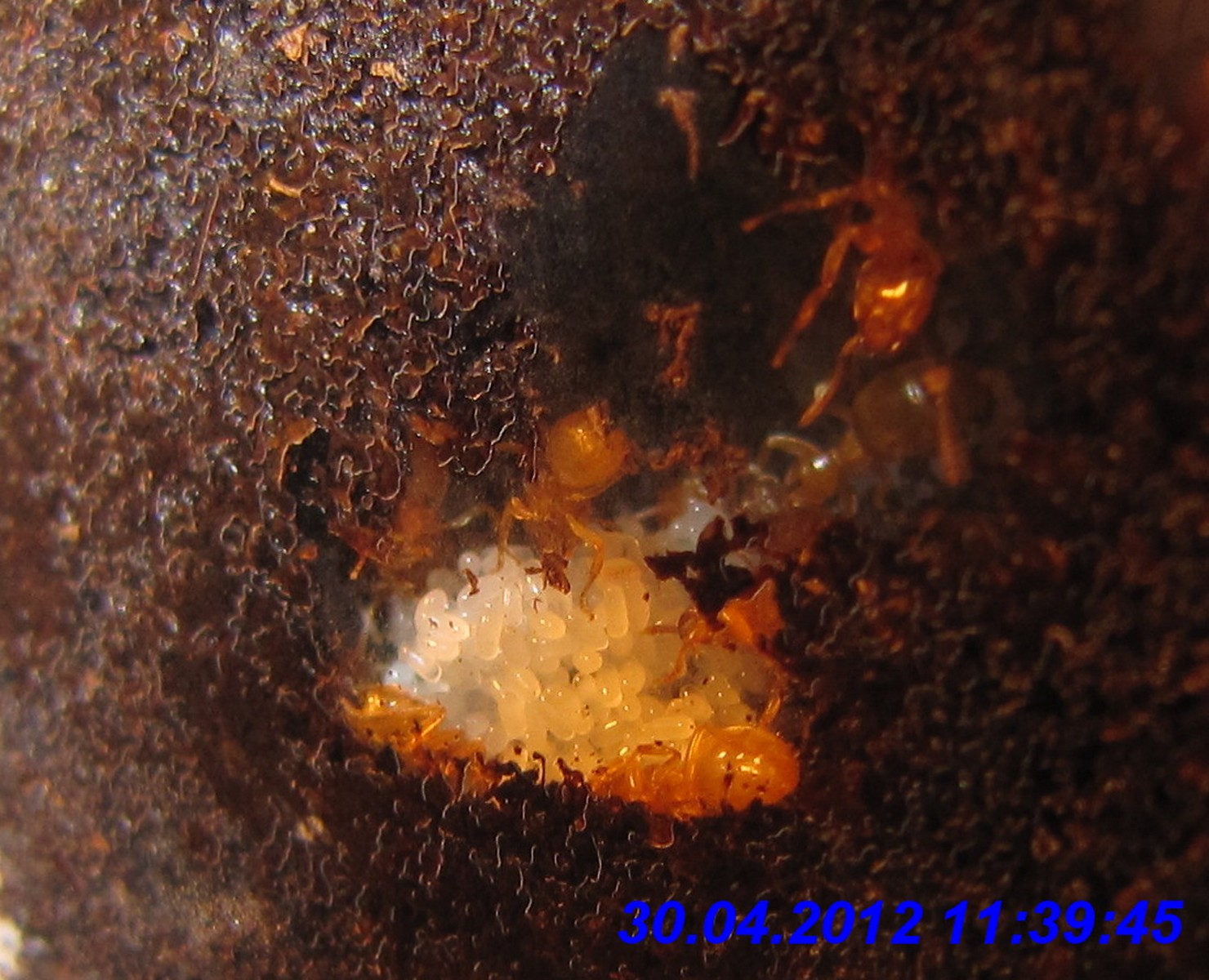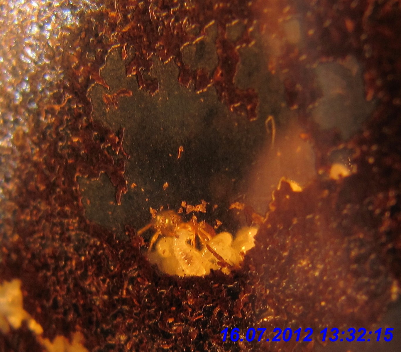 Von den Lasius cf. flavus waren zu diesem Zeitpunkt zumindest noch zahlreiche Arbeiterinnen vorhanden, die ich regelmäßig am angebotenen Zuckerwasser beobachten konnte. Sogar eine dealate