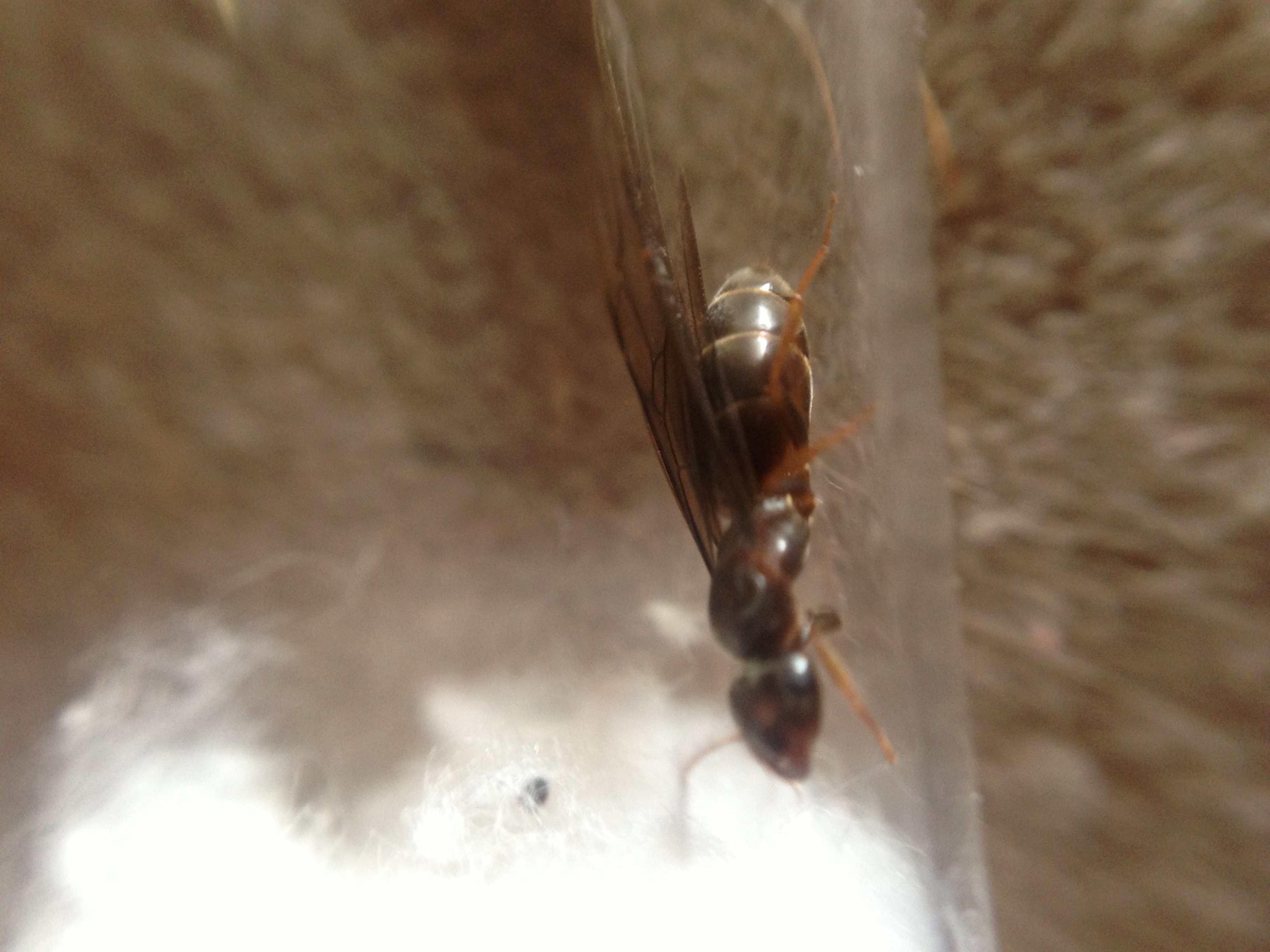 Sieht aus wie eine Lasius niger Gyne. Die dürften jetzt so langsam schlüpfen. Aber geschwärmt sind sie wahrscheinlich noch nicht. Deine hat ja auch noch ihre Flügel, und wenn es einen richtigen Schwarmflug gegeben hätte, dann wären da noch mehr.