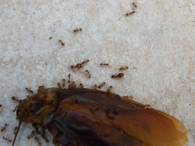 [font=Calibri]An unserem Haus konnte ich fo[/font][font=Calibri]lgende Ameisen beobachten, die gerade dabei waren, eine tote Kakerlake abzutransportieren. Die KörpergröĂe betrug etwa 1-2mm und es waren deutlich unterschiedliche Erscheinungsbilder zu erkennen. SpĂ€ter hatte ich sogar das GlĂŒck, einen Schwarmflug miterleben zu können:[/font]
