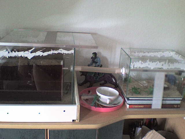 Die kleine Arena mit der Tränke und den grünen (Kunst?)Pflanzen ist also vergleichsweise neu bzw. erst vor kurzem angeschlossen?