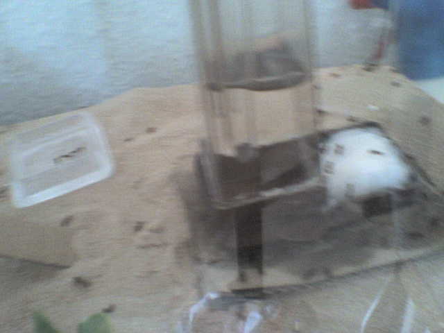 Ja ich habe so eine Tränke gekauft, die man mit Wasser befüllt und wo man dann am Boden Watte rein steckt, die befeuchtet wird. Die Ameisen können dort also jederzeit Wasser aufnehmen. Sie steht auch in der Arena.