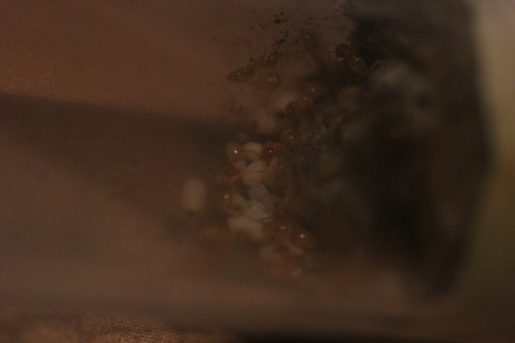 Bei der nĂ€chsten FĂŒtterung (Morgen) werde ich wohl mal wieder eine VolkszĂ€hlung vornehmen. Ich glaube, dass einige von mir unentdeckte Larven (hinter der Gyne oder so :D ) im RG sein könnten, weil sich gestern Abend einige Arbeiterinnen um den Gammarus tummelten.