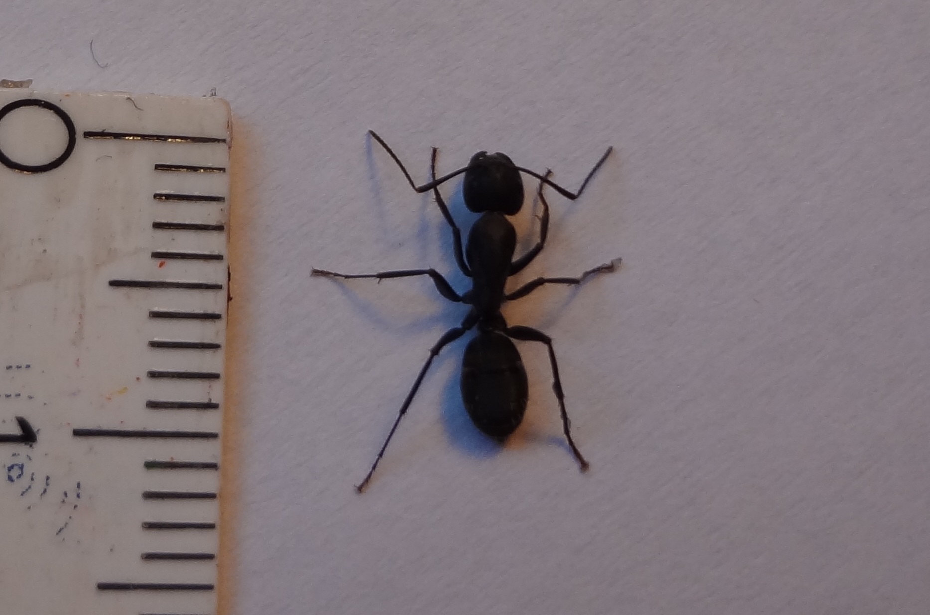 Also die Arbeiterinnen sind komplett schwarz und ca. 9-10 mm, ihr Hinterteil ist ca. 2-3mm.