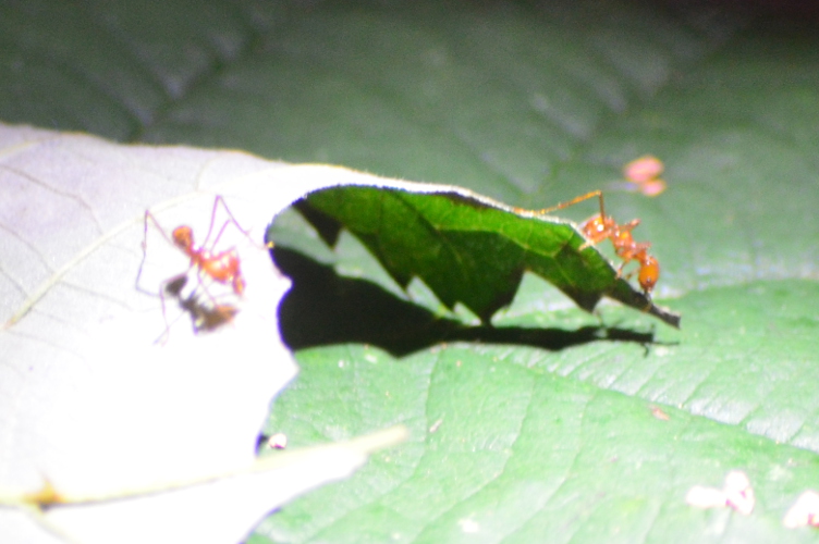 Ich habe beobachtet dass die Ameisen ihr Schneidverhalten deutlich beschleunigt haben , und an einer tour BlĂ€tter in dass Nest wo auch der pilz ist tragen . Leider kann ich den Pilz nicht sehen da er in einem HĂŒgel aus Seramis kultiviert wird . Den WaldblĂŒtenhonig wo ich anbiete wird auch sehr gern und oft aus dem Schwamm gesaugt. Desweiteren konnte ich beobachten wie ein