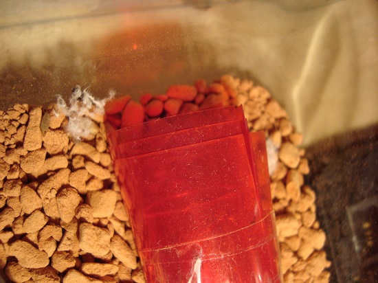 Feuchtigkeit: Feuchter und trockener Nestanteil erforderlich, Luftfeuchtigkeit 60% - 70% in der Arena. Es gibt Hinweise darauf, dass ein eher trockenes Nest positiv auf das Wachstum wirkt.[1]