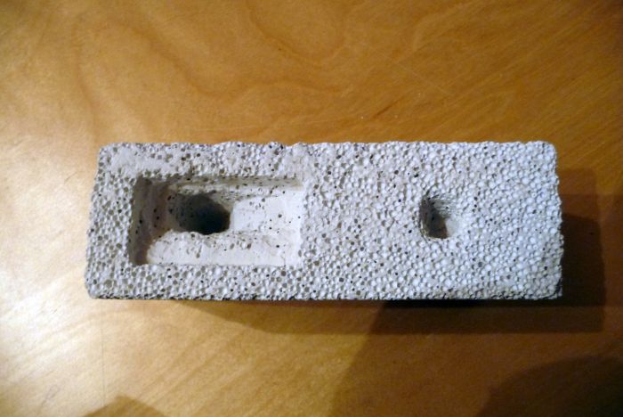 Nachdem die Größe des Nestes entschieden war, sägte ich mit einem Fuchsschwanz den entsprechenden Block aus dem Porenbeton.