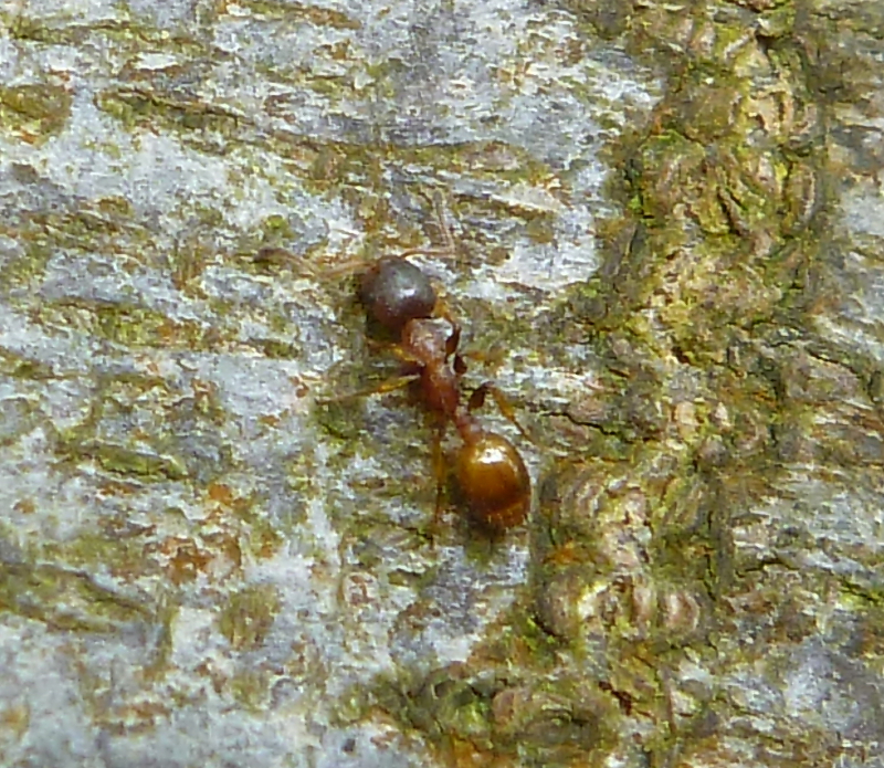 Und schließlich diese Ameise. Ich habe oft gelesen, dass sich Temno/Leptothorax-Ameisen bei Gefahr ducken. Genau das tat sie auch, als ich mich mit der Kamera näherte. Trotzdem fiel es mir - bei der geringen Größe - schwer, ein anständiges Foto hinzubekommen.