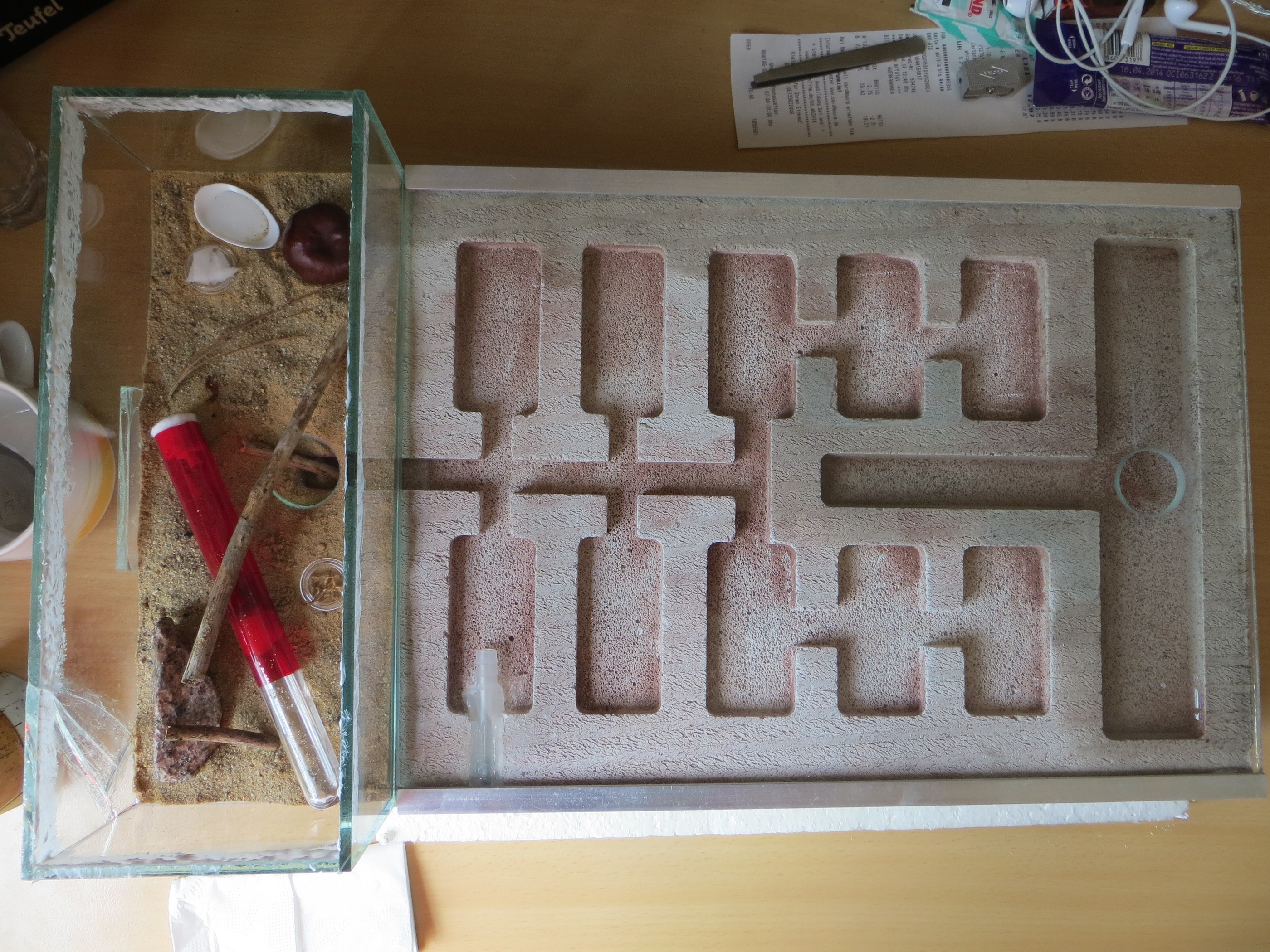 Ich bin Ameisen-Neuling und habe mich im Vorfeld ausfĂŒhrlich mit den BroschĂŒren vom Antstore, dem ameisencafe und dem ameisenforum ausseinander gesetzt. Der wunsch nach Ameisen besteht schon ĂŒber ein Jahr und seit heute ist es soweit.