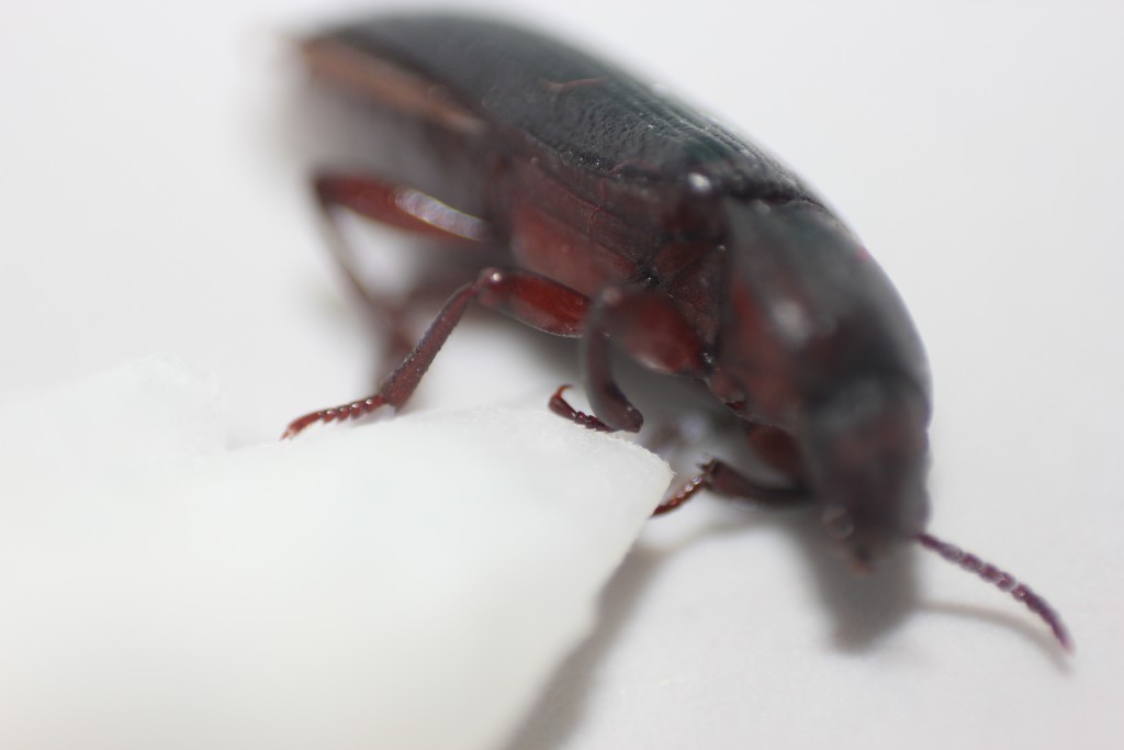 Ich würde ihn jetzt optisch Harpalus latus, rubripes oder tardus zuordnen könnte aber auch ein Calathus erratus sein. Er läuft mittlerweile wieder sehr lebendig herum, will das Klopapier das ich an einer Stelle angefeuchtet habe aber scheinbar nicht verlassen. Wollte ihn grade nach draussen entlassen aber er schien noch nicht so recht zu wollen