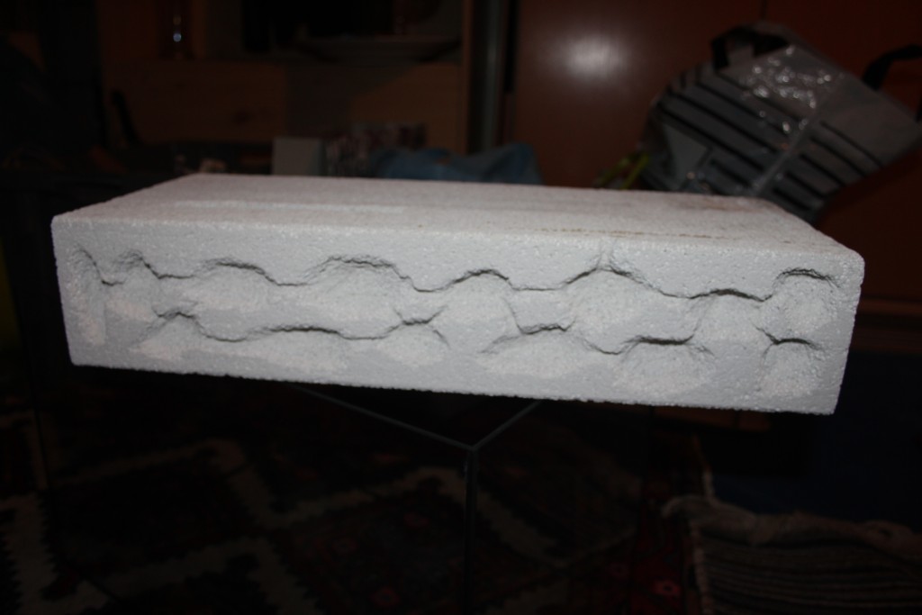 Die Bruchkante (Bild 3) habe ich mit der Feile (Bild 4) und dem Schleifbrett begradigt und auch an alle Kanten Phasen gefeilt (Bild 5), das ist eine Gewohnheit aus meiner Ausbildung, wo ich mit Stahl gearbeitet habe, am Ytong wird sich zwar keiner schneiden, aber es hatte sich hinterher gezeigt, dass das fĂŒr die Passgenauigkeit notwendig war wegen dem Silikon in den Ecken des Terrariums :D .
