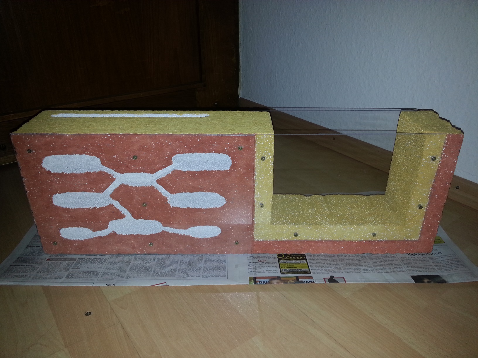 Baue zur Zeit gerade am Nest fĂŒr Camponotus rufoglaucus feae. Es handelt sich hierbei um ein Ytong Nest mit integriertem AuĂenbereich. ZusĂ€tzlich besitzt der AuĂenbereich noch ĂŒber einen optionalen Zugang welcher spĂ€ter zum Anschluss einer gröĂeren Arena verwendet werden kann.