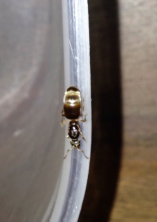 26.07.2014, Samstag1 Königin, Alter 7 Tage7 Eier0 Larven0 Puppen0 Arbeiterinnen Eier! Seit der letzten Zwangsumsiedelung habe ich sie in einem Schrank in völliger Dunkelheit in Ruhe gelassen - und siehe da, ich konnte heute einen Pack Eier entdecken. GezĂ€hlt habe ich bislang 7, sie hat die zukĂŒnftigen PygmĂ€en bei Lichteinfall auch zwischen die