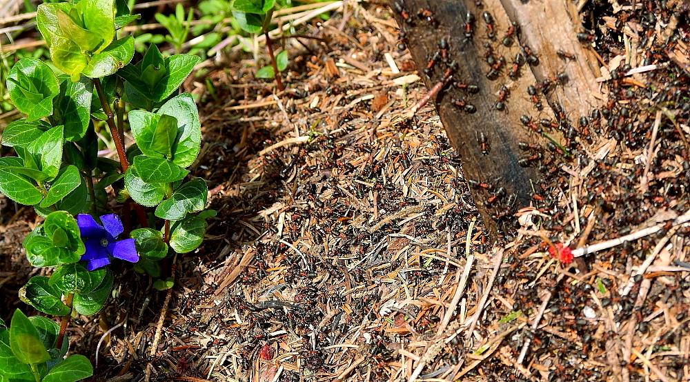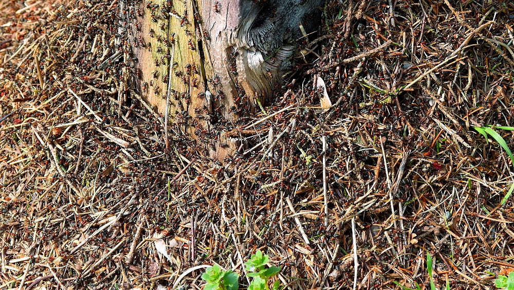 Verdeutlicht durch unzählige, emsige Ameisen auf und im Umfeld ihres Nesthaufens.