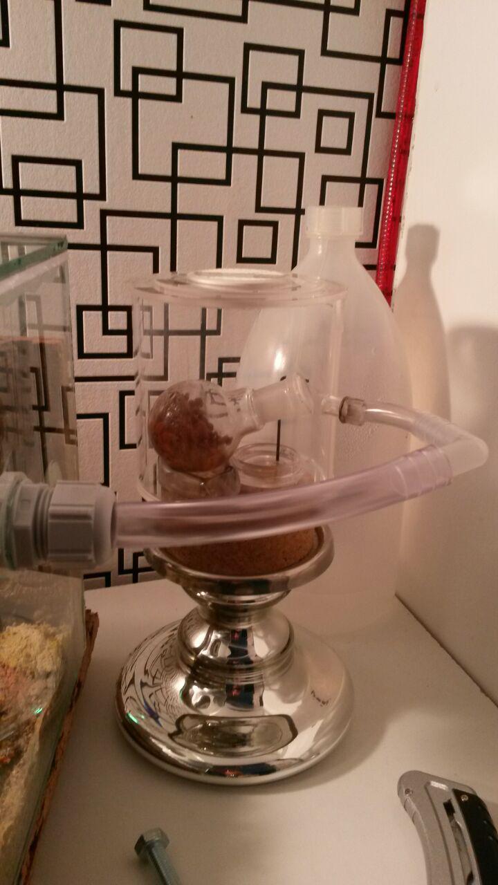 Der zweite Zylinder dient ausschließlich der Fütterung und hat deshalb auch keinen Bodengrund etc. damit sich gar nicht erst Pilze oder Parasiten einnisten können. Auch können die Kleinen so keinen "Docht" aus Sand ins Rundkölbchen schleppen, um das Wasser auszusaugen.