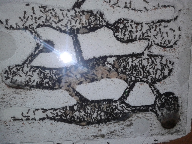 Die Kolonie ist nun also ziemlich genau 4 Monate alt. Abschätzen kann ich das Wachstum der Kolonie aktuell gar nicht. Ich gehe von 200-300 (kann auch deutlich mehr sein, weniger nicht) Ameisen aus und