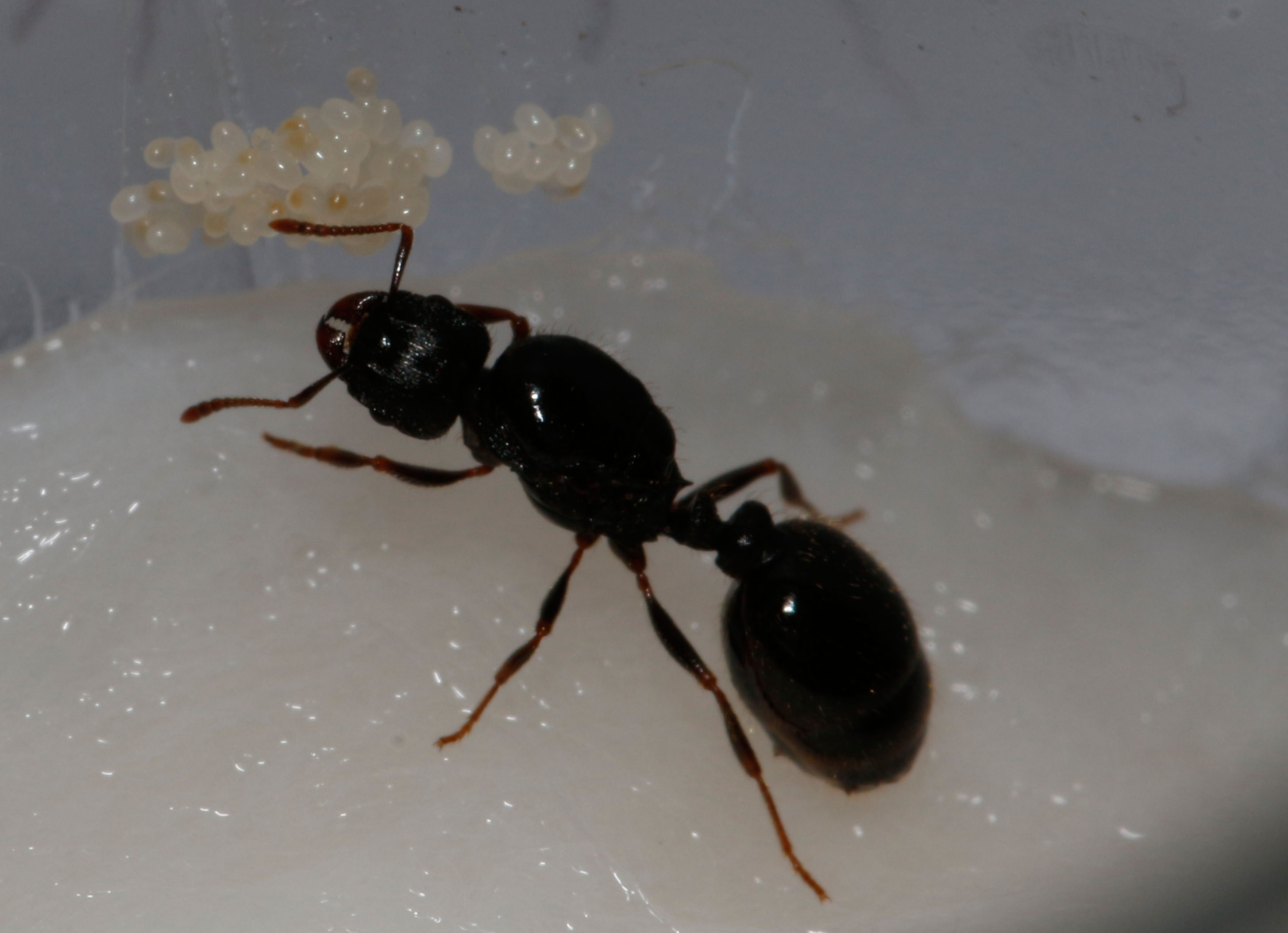 Sie ist ca. 9mm groß und eher schwarz gefärbt und wie ihr seht, hat sie auch schon fleißig Eier gelegt.