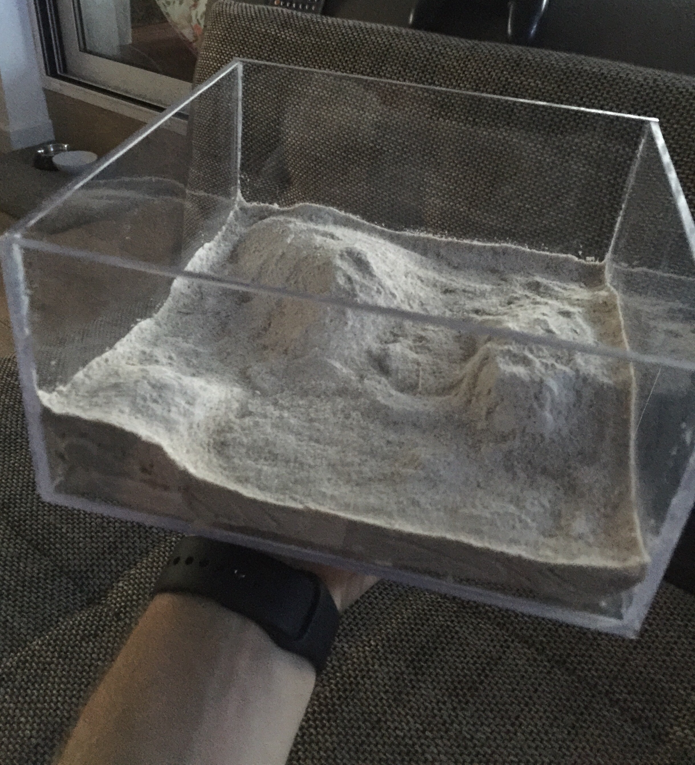 Bei Sand als Bodengrund besteht grundsätzlich das Problem, dass Beutetiere schwierig transportiert werden können, da die Ameisen auf den Sandkörnern keinen festen Halt finden und "auf der Stelle" laufen. Du hast geschrieben, dass Du den Sand mit dem Gips vermischt hast, von daher weiss ich nicht, inwieweit es zutrifft.