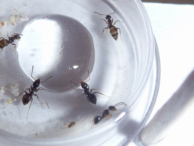 Zum einen wurde das Wasser im RG knapp, zum anderen wollte ich sie besser beobachten. Insgesamt bereue ich den Schritt ein wenig, da er mit sehr viel Stress für mich und vor allem für die Ameisen verbunden war, allerdings scheinen die Ameisen das gut überstanden zu haben. Lasius niger ist echt hart im Nehmen.