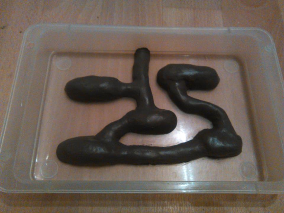 Angefangen habe ich damit, in einer flachen Plastikschale mit Knetgummi Kammern und GĂ€nge zu modellieren. Diese wurden danach mit Ăl bestrichen. Dadurch lassen sich spĂ€ter die Teile leichter voneinander Trennen.
