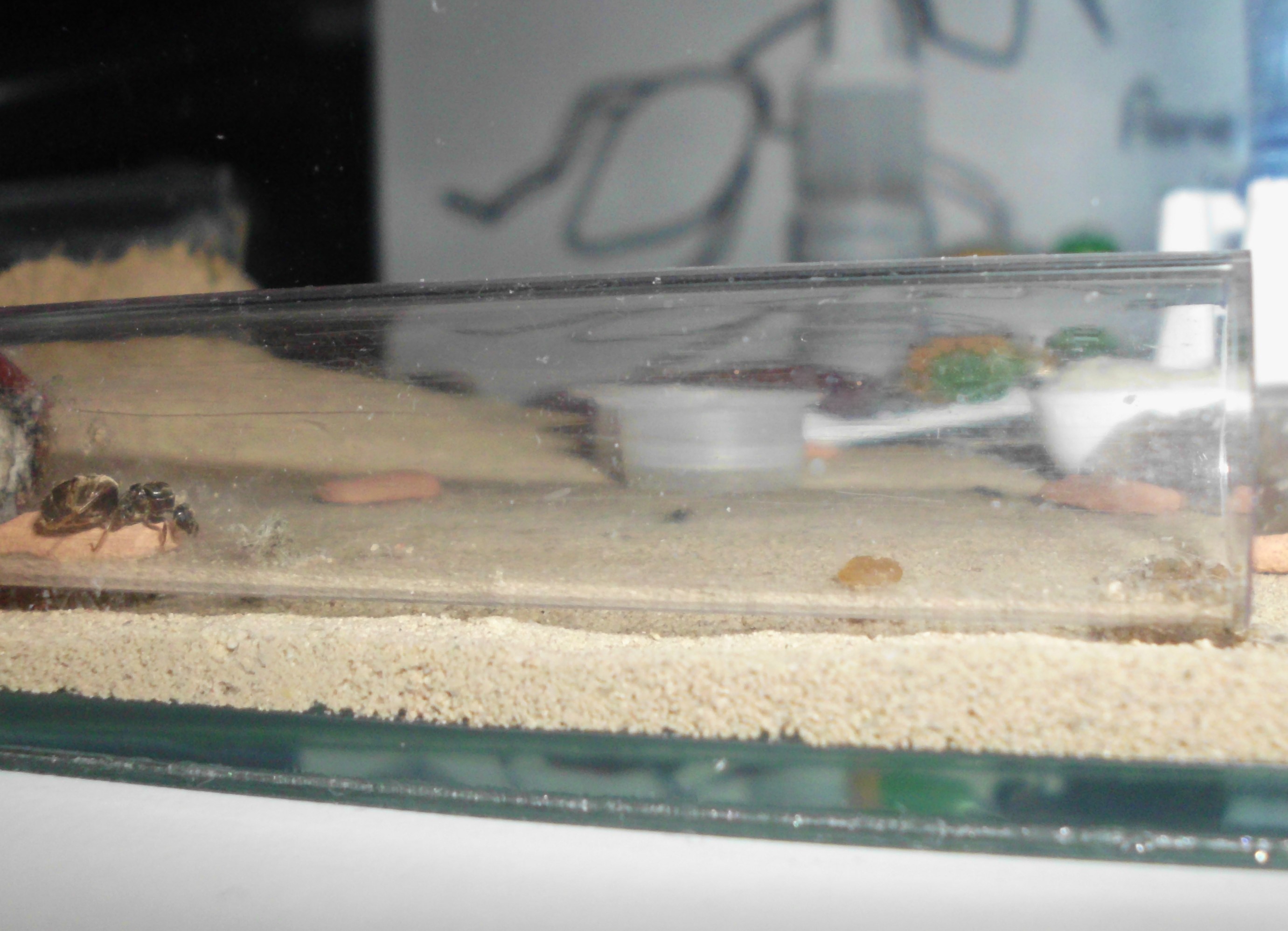 Die Ameisen sitzen noch immer auf und neben dem Seramissteinchen. Die