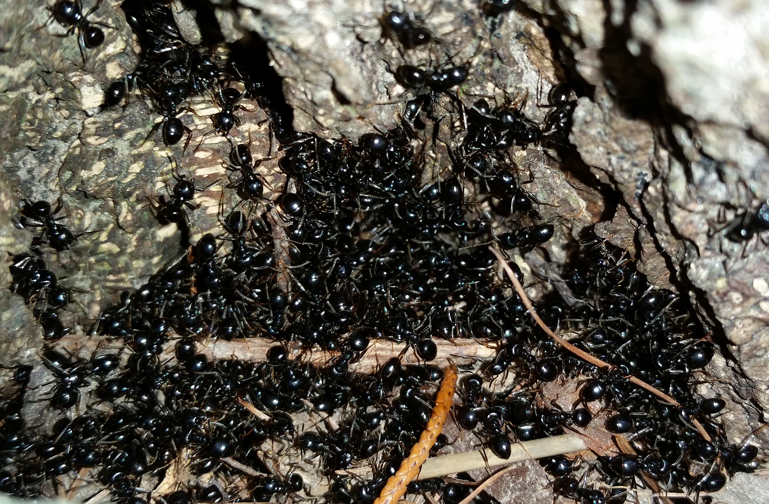 Nachdem jetzt die schöne Ameisenzeit wieder beginnt, hab' ich mich mal auf die Suche gemacht und auch welche gefunden. (In einem voriges Jahr abgesÀgten Birkenbaumstamm)
