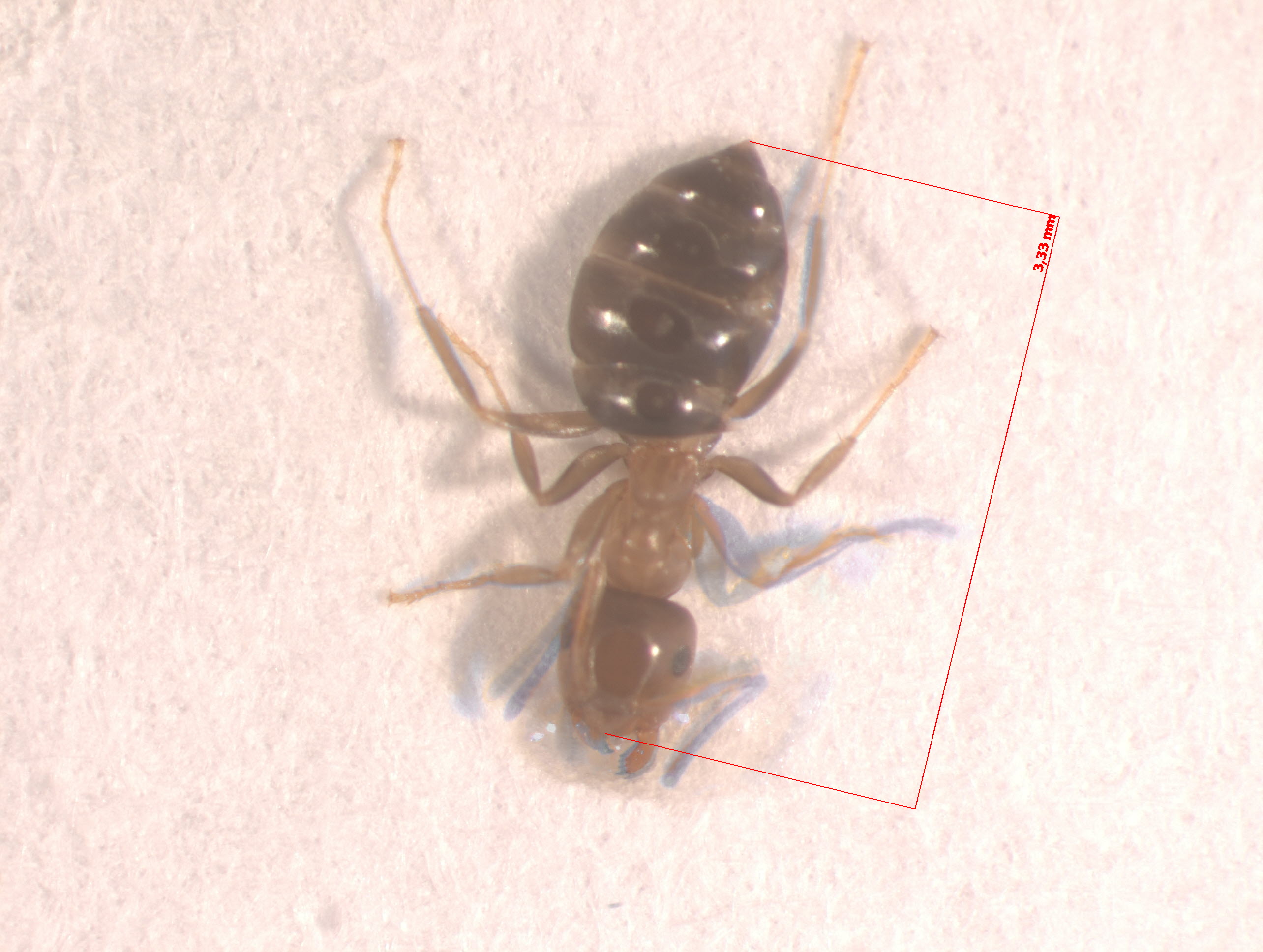 hier habe ich noch einige Bilder unter dem Mikroskop gemacht (Ameisen musste ich mit Tesa festkleben). Ich denke mit eurer Vermutung mit Lasius brunneus liegt ihr wohl richtig.