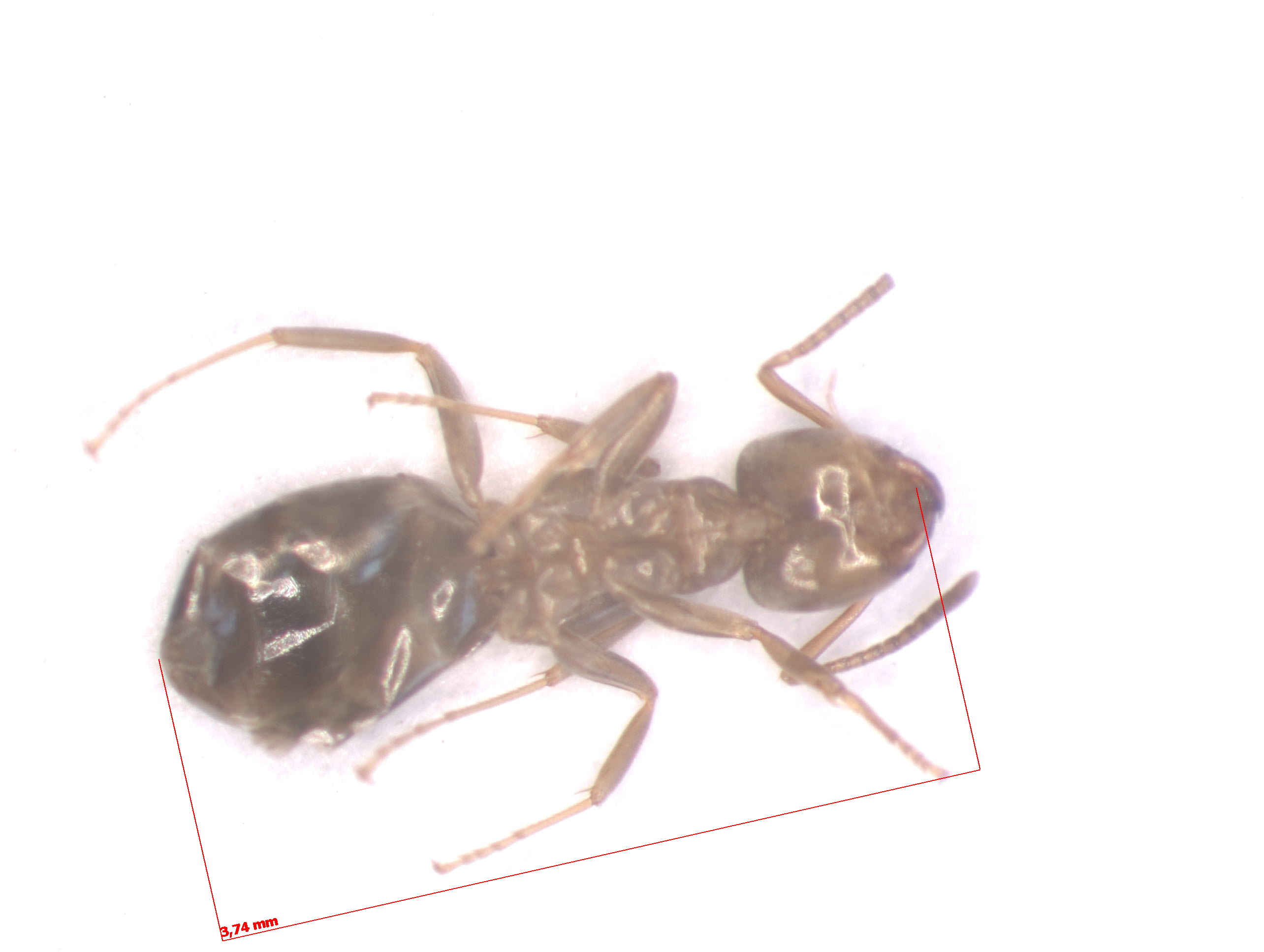 hier habe ich noch einige Bilder unter dem Mikroskop gemacht (Ameisen musste ich mit Tesa festkleben). Ich denke mit eurer Vermutung mit Lasius brunneus liegt ihr wohl richtig.