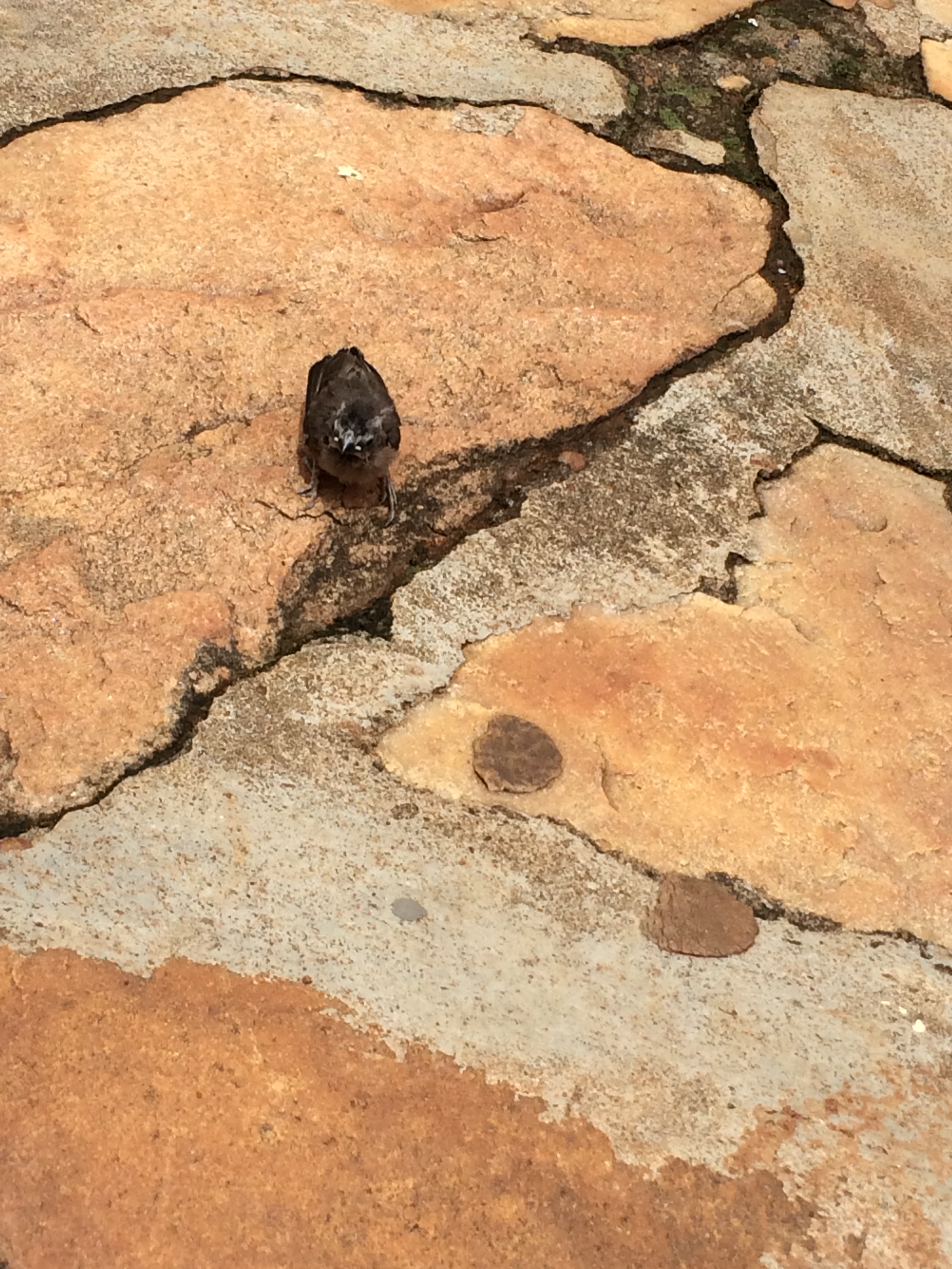 Hier die Vögelchen. Es waren drei oder vier, eines fraßen die Pheidole, bei einem sah ich die Freude, als der erste Flug endlich glückte. Ich hatte das erschöpfte Tier mit Wasser versorgt.