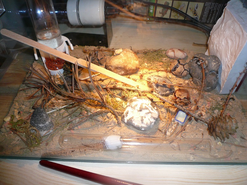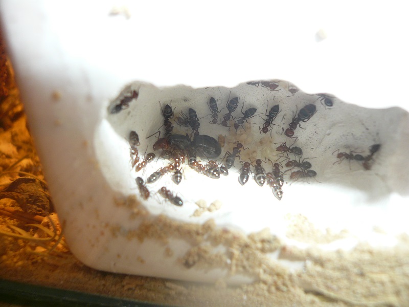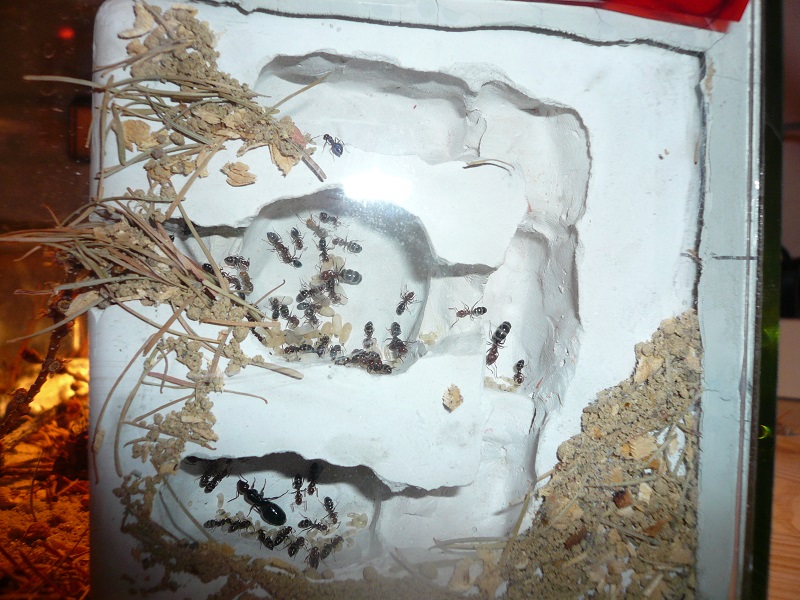 Brut geht's gut, während weiterhin fleißig Nadeln und Sand in das Gipsnest (ich fertige übrigens gerne auf Maß solche Gipsnester an, einfach bei mir melden) transportiert werden.