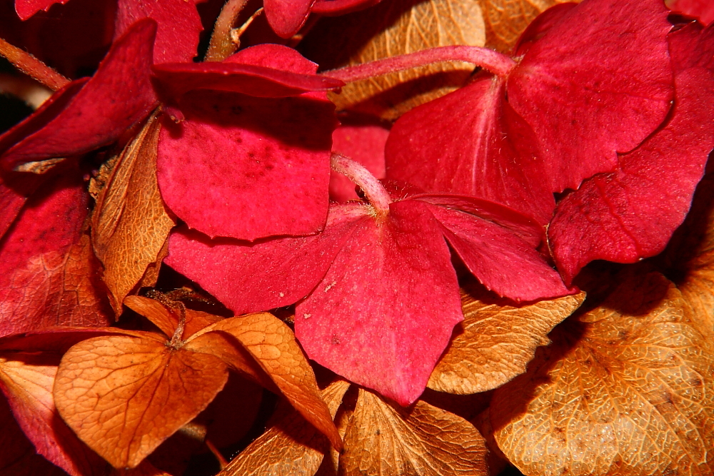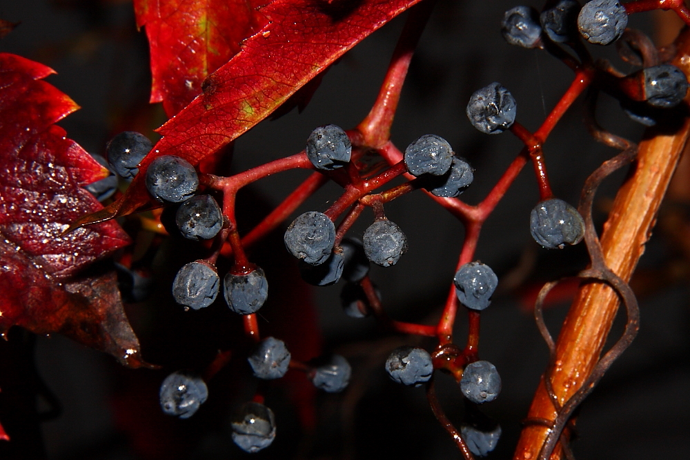 Heute hatte ich fĂŒr heuer den letzten groĂen Arbeitstag in meinem Bienengarten, bevor ich also mit Sack und Pack mit dem Auto davonfuhr, entdeckte ich noch dieses schöne Fallaub neben der Garage, vom Nebel erfasst (erstes Foto).