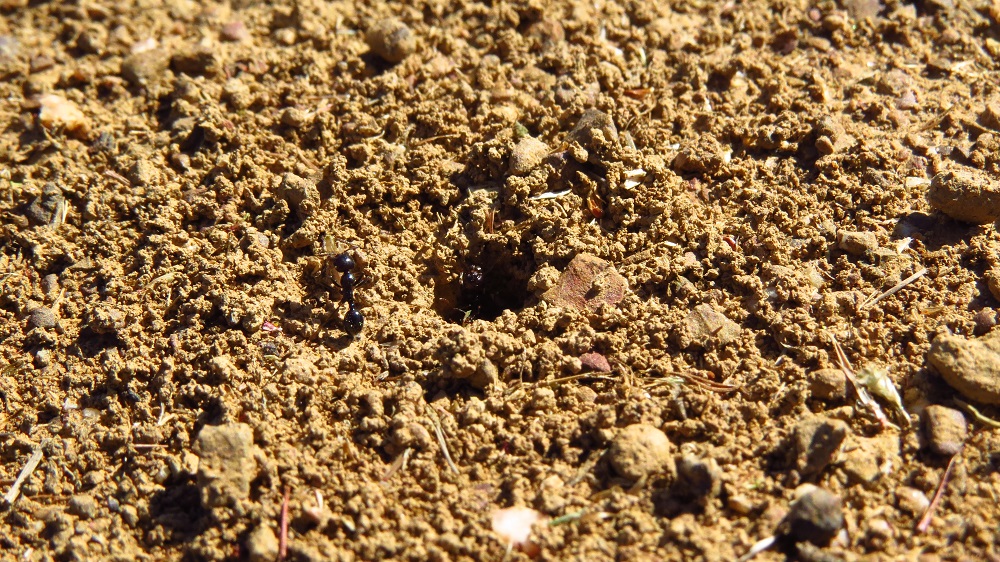 Tapinoma nigerrimum Nesthügel werden übrigens selbst nach starken Regenfällen repariert und bestehen längerfristig, nicht wie etwa bei Tapinoma erraticum die sich nach fast jedem Regen einen neuen kleinen Hügel bauen müssen.