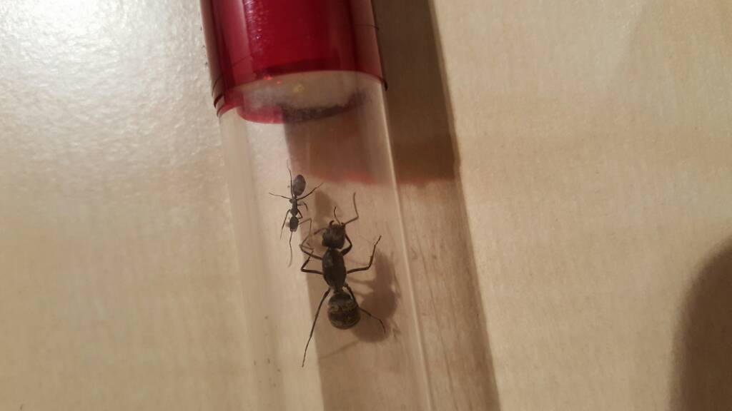 Von den Kleinen ist nichts zu sehen, hab den Stopfen zwar entfernt und ein biĂchen Zuckerwasser angeboten aber die Kleinen mĂŒssen sich erstmal akklimatisieren. Das Reagenzglas hab ich zumindest mal zusĂ€tzlich mit Alufolie abgedunkelt.