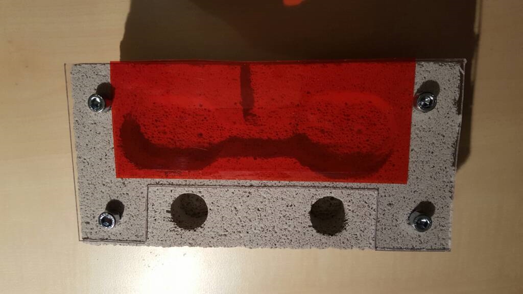 Die Arena hatte ich schon rudimentĂ€r vorbereitet. Ich hab eine rote Sand-Lehm-Mischung ordentlich getrocknet und darĂŒber eine dĂŒnne und lockere Schicht Regenwaldgrund verteilt. Unter dem Becken klebt auf einer Seite eine 7W Heizmatte: