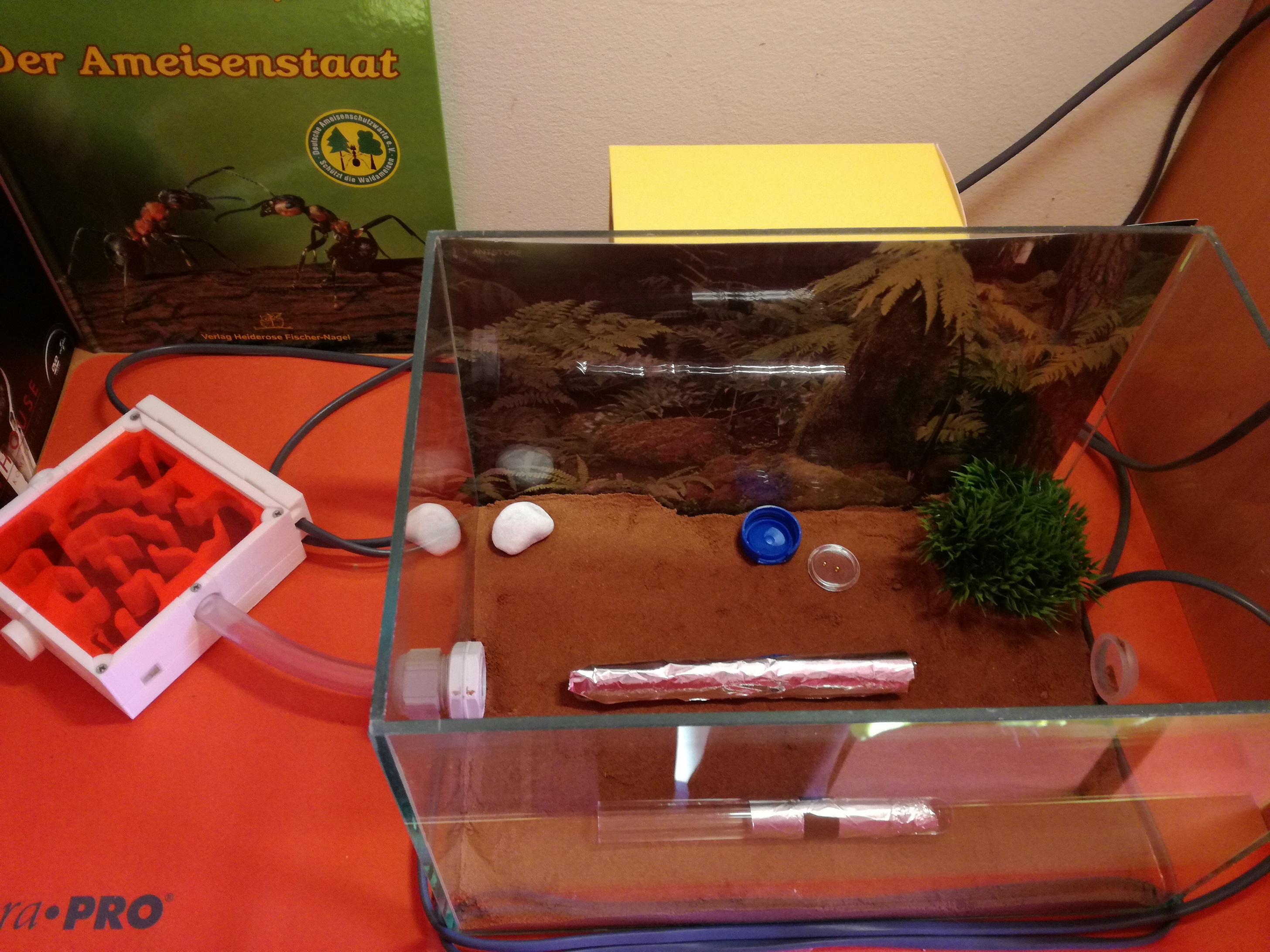 Im nächsten Beitrag kommen dann die Hauptdarsteller mit Bildern hier nur ein Bild von der Behausung mit Bewässerung.